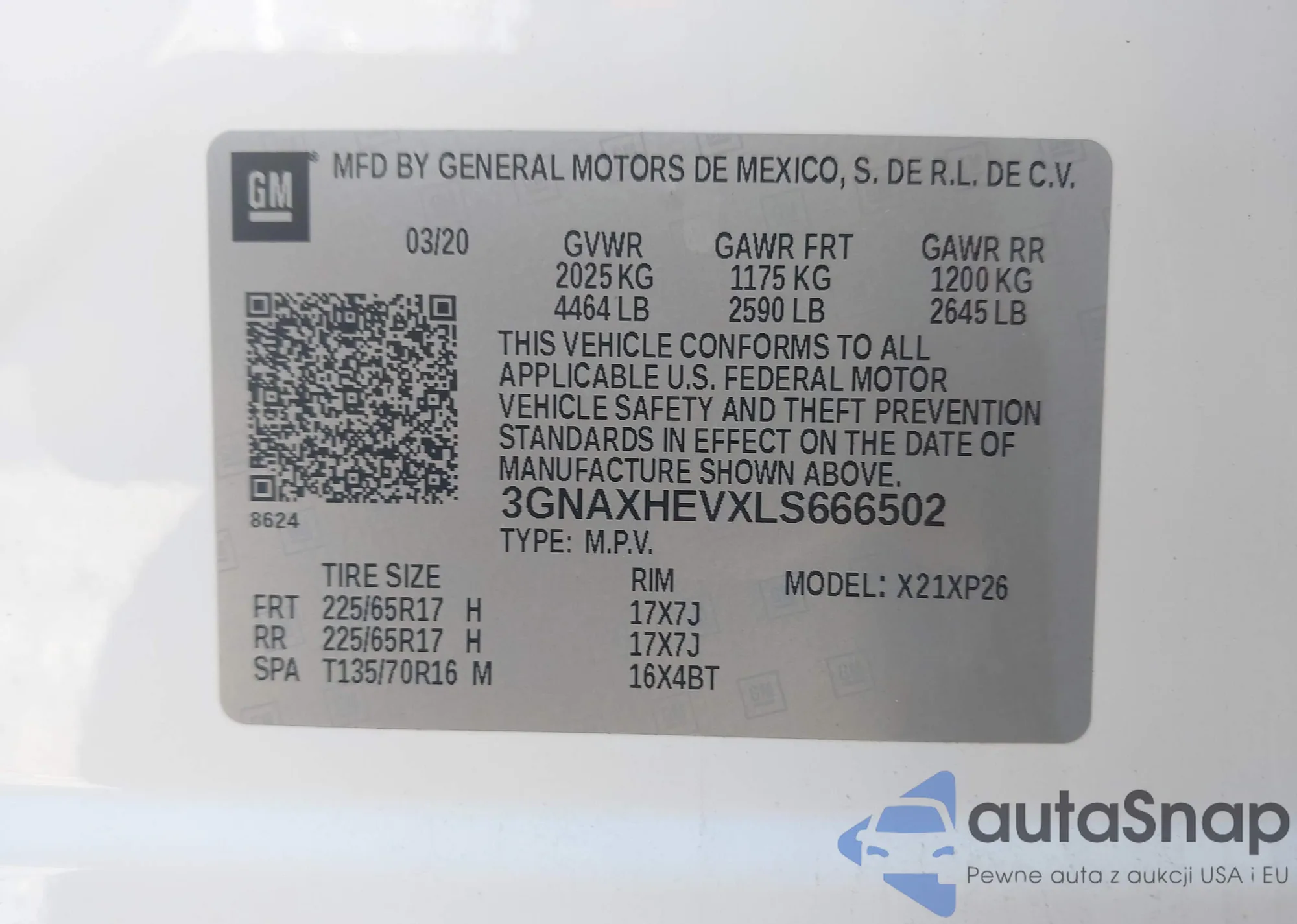 LOT: 43987879 VIN: 3GNAXHEVXLS666502