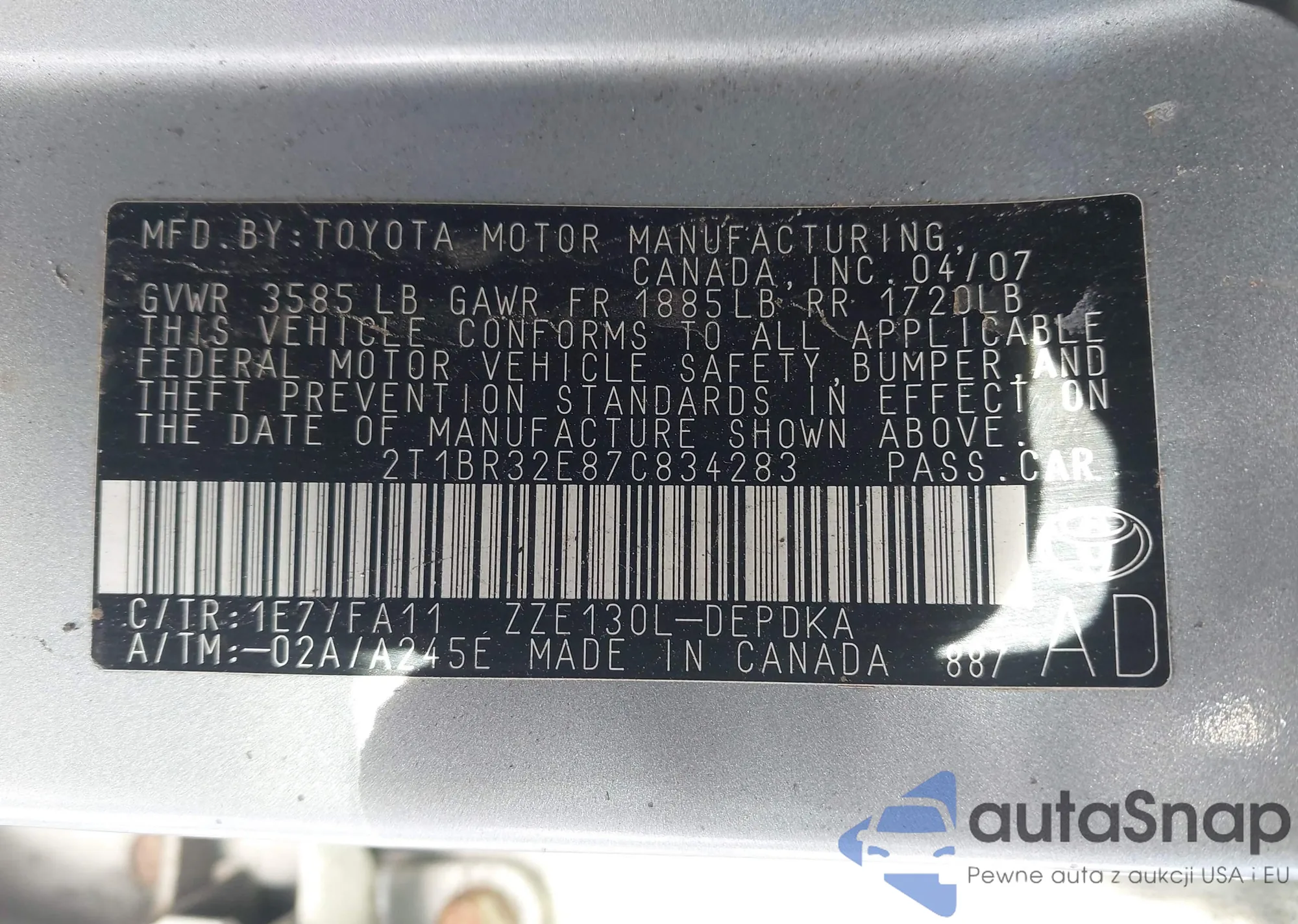 • VIN 2T1BR32E87C834283