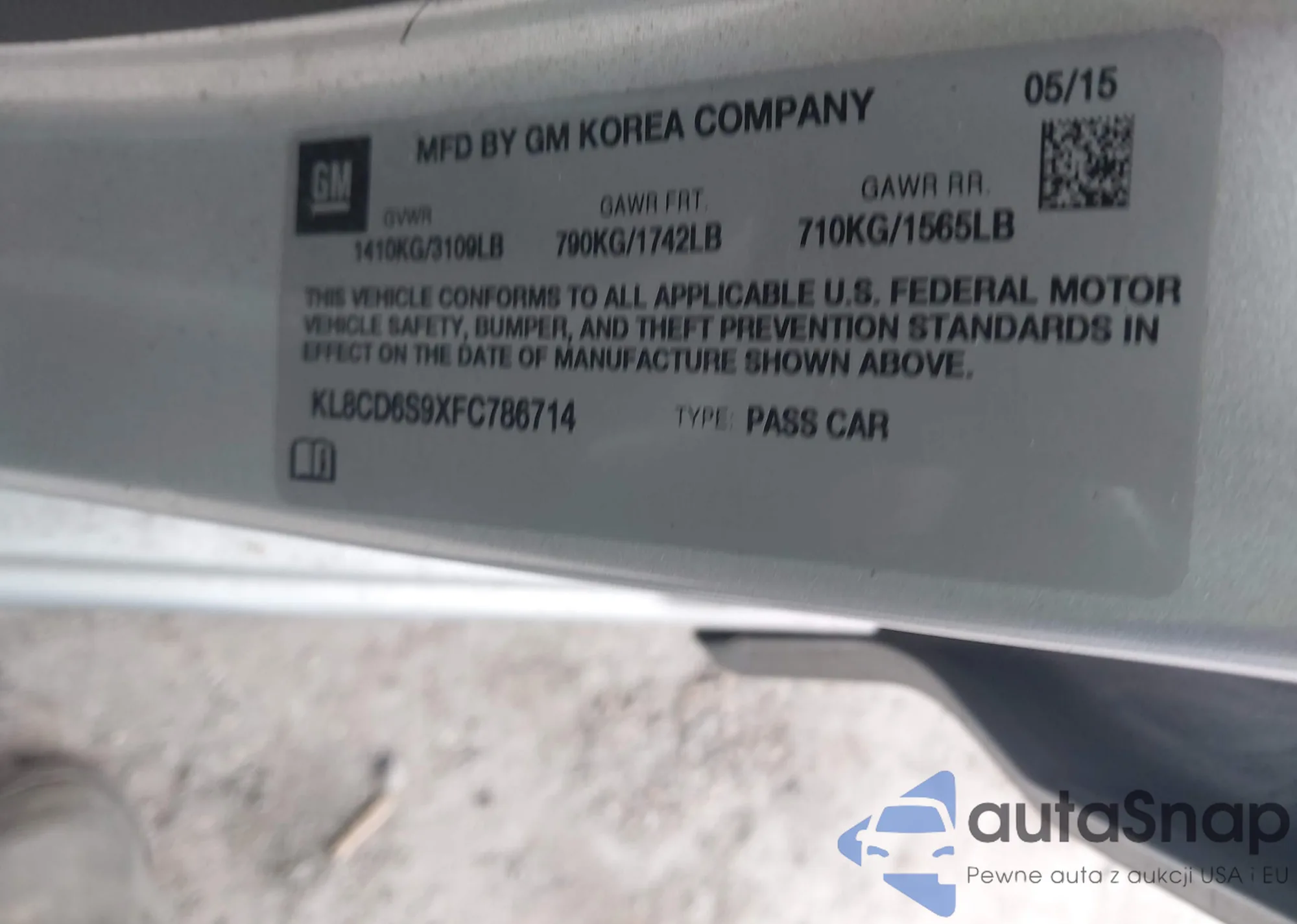 • VIN KL8CD6S9XFC786714