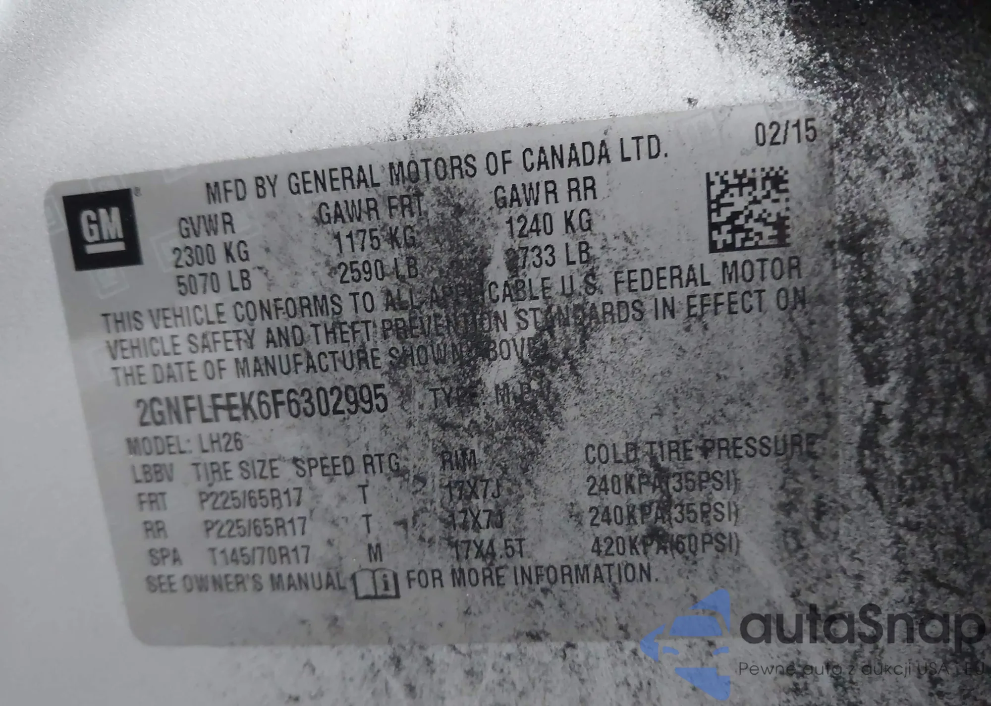 • VIN 2GNFLFEK6F6302995
