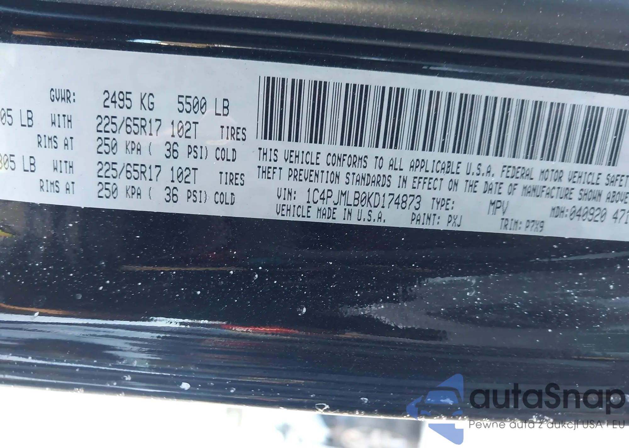 • VIN 1C4PJMLB0KD174873