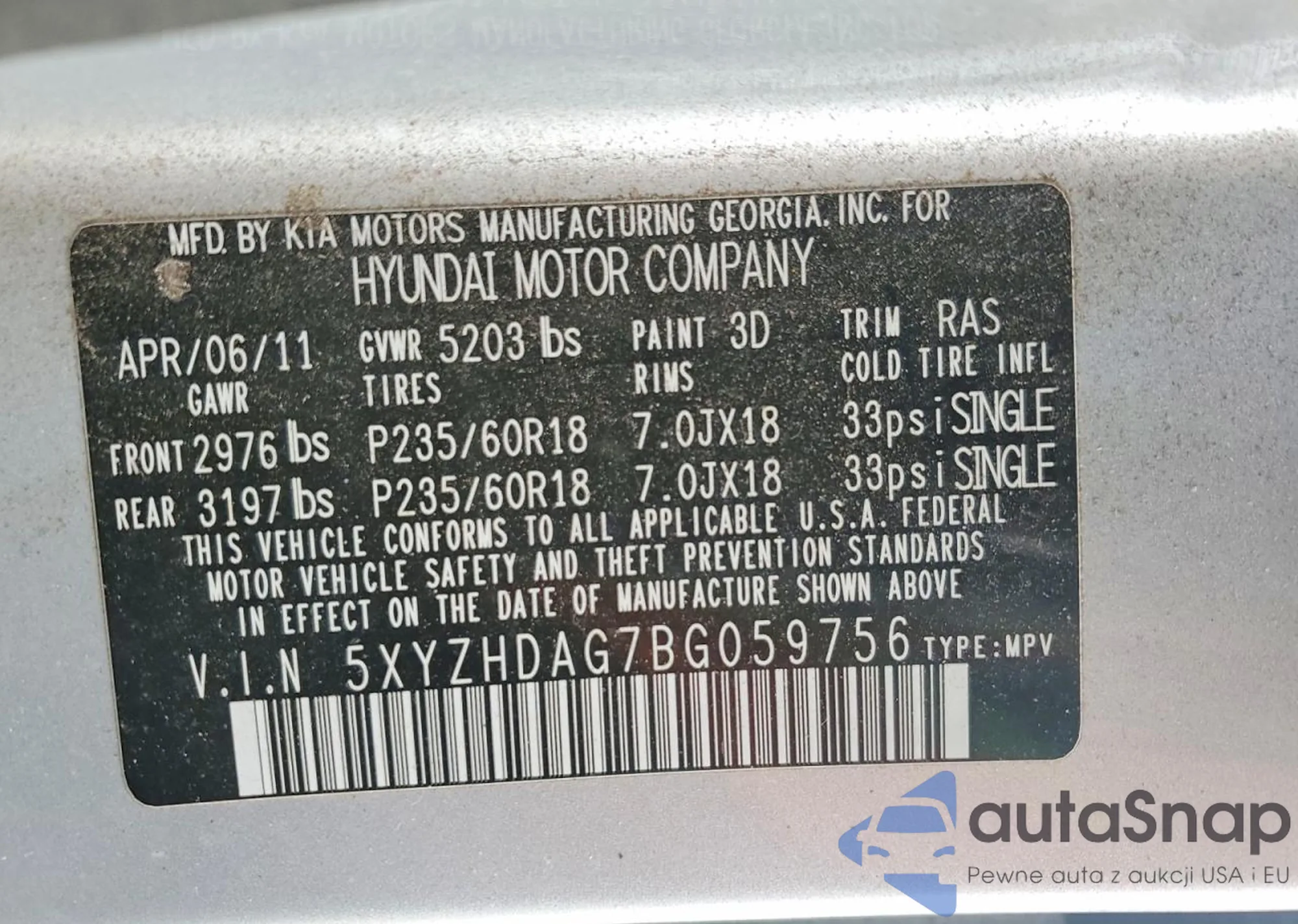 • VIN 5XYZHDAG7BG059756