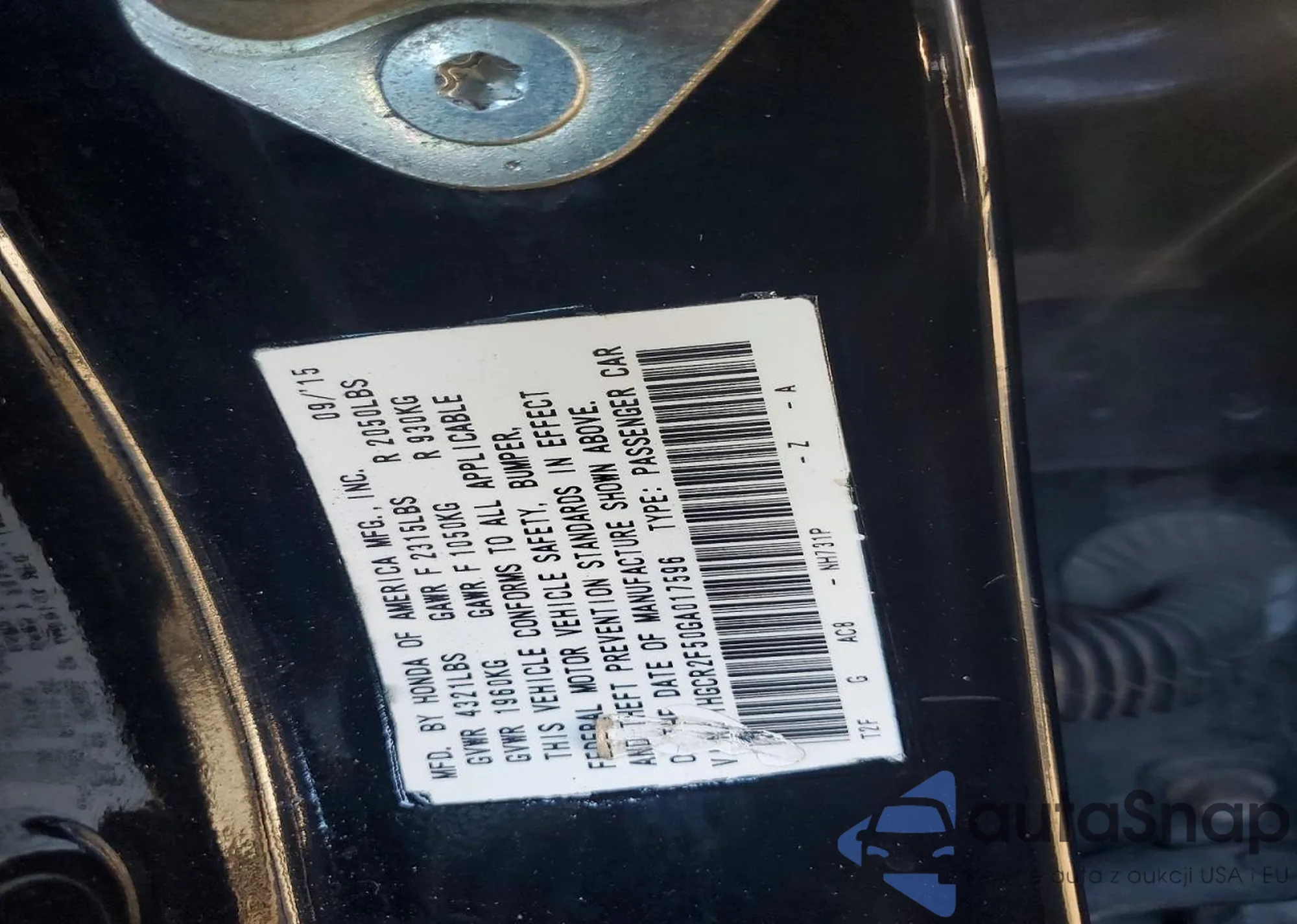 LOT: 73629345 VIN: 5FNRL38477B029899