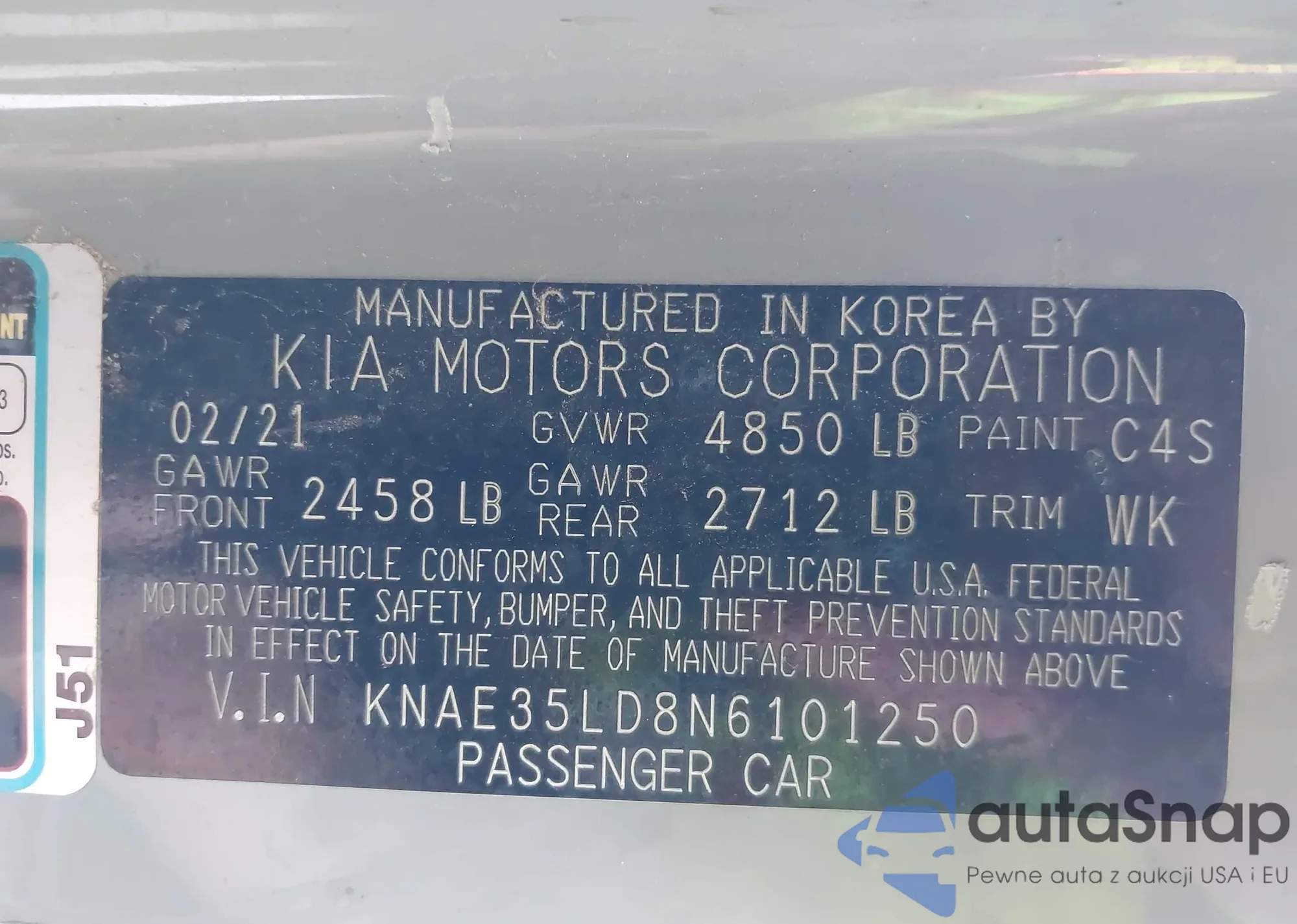LOT: 43388035 VIN: KNAE35LD8N6101250