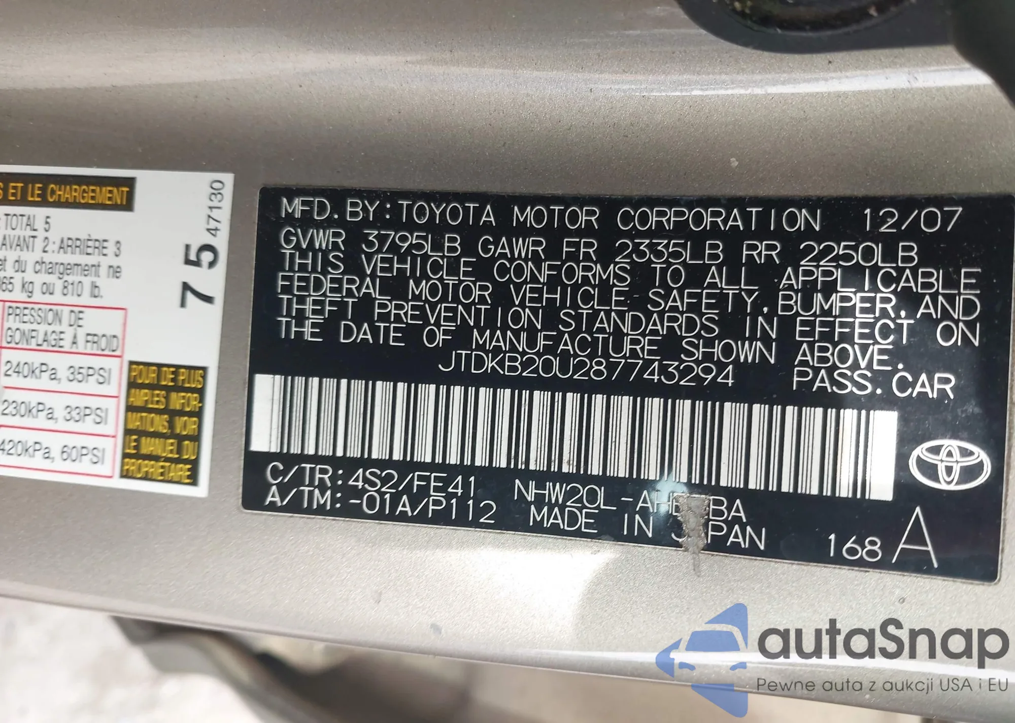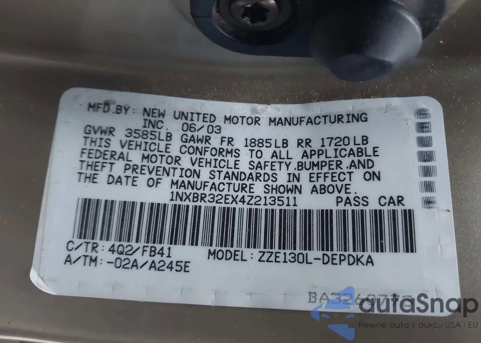 • VIN 1NXBR32EX4Z213511