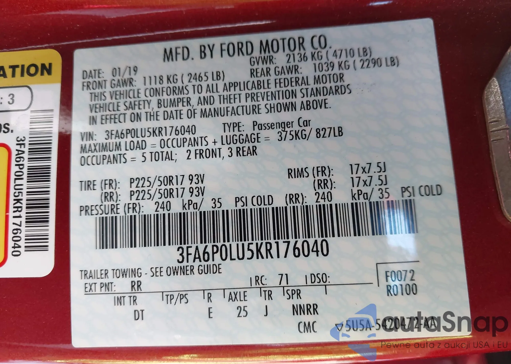 • VIN 3FA6P0LU5KR176040