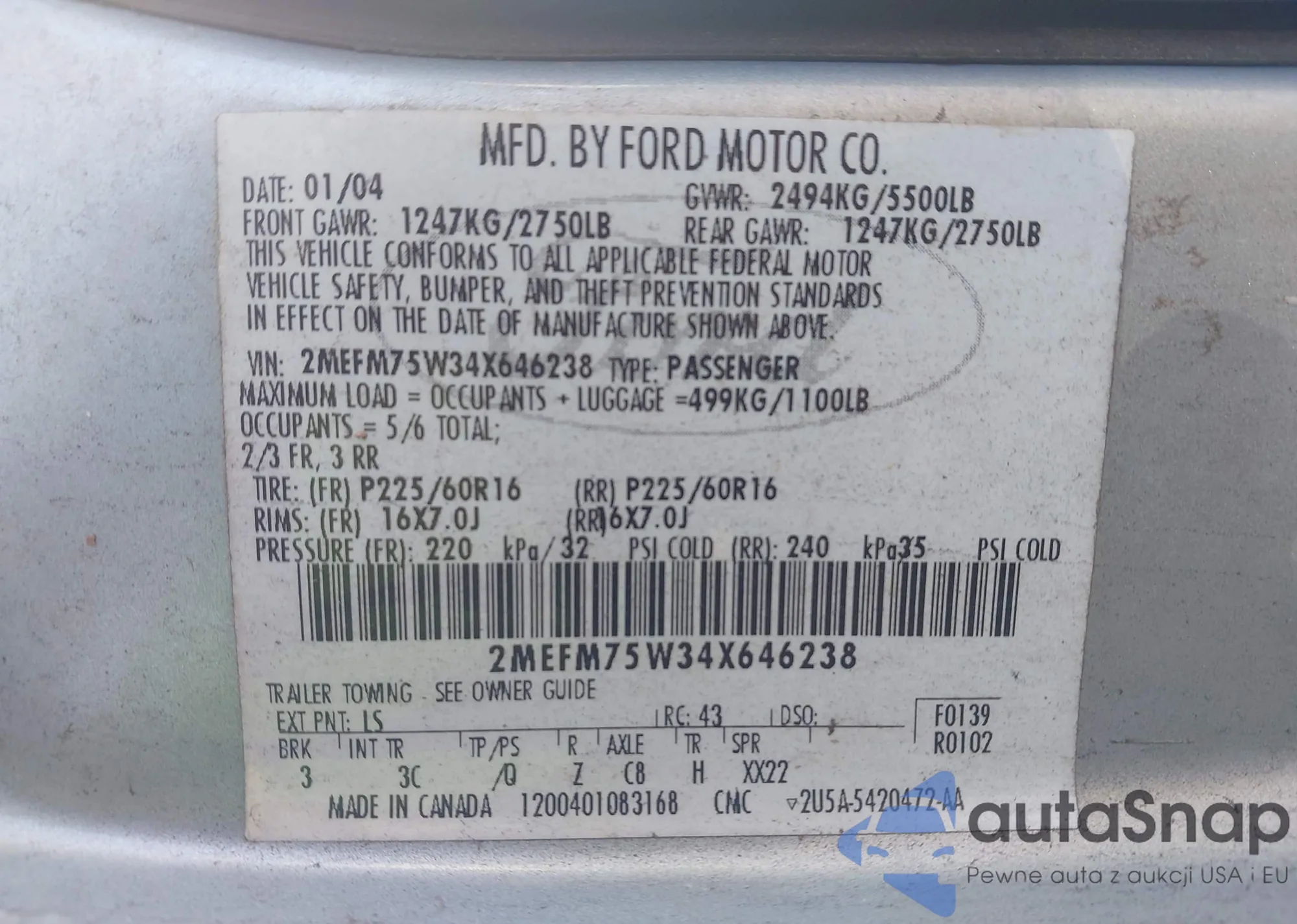 • VIN 2MEFM75W34X646238
