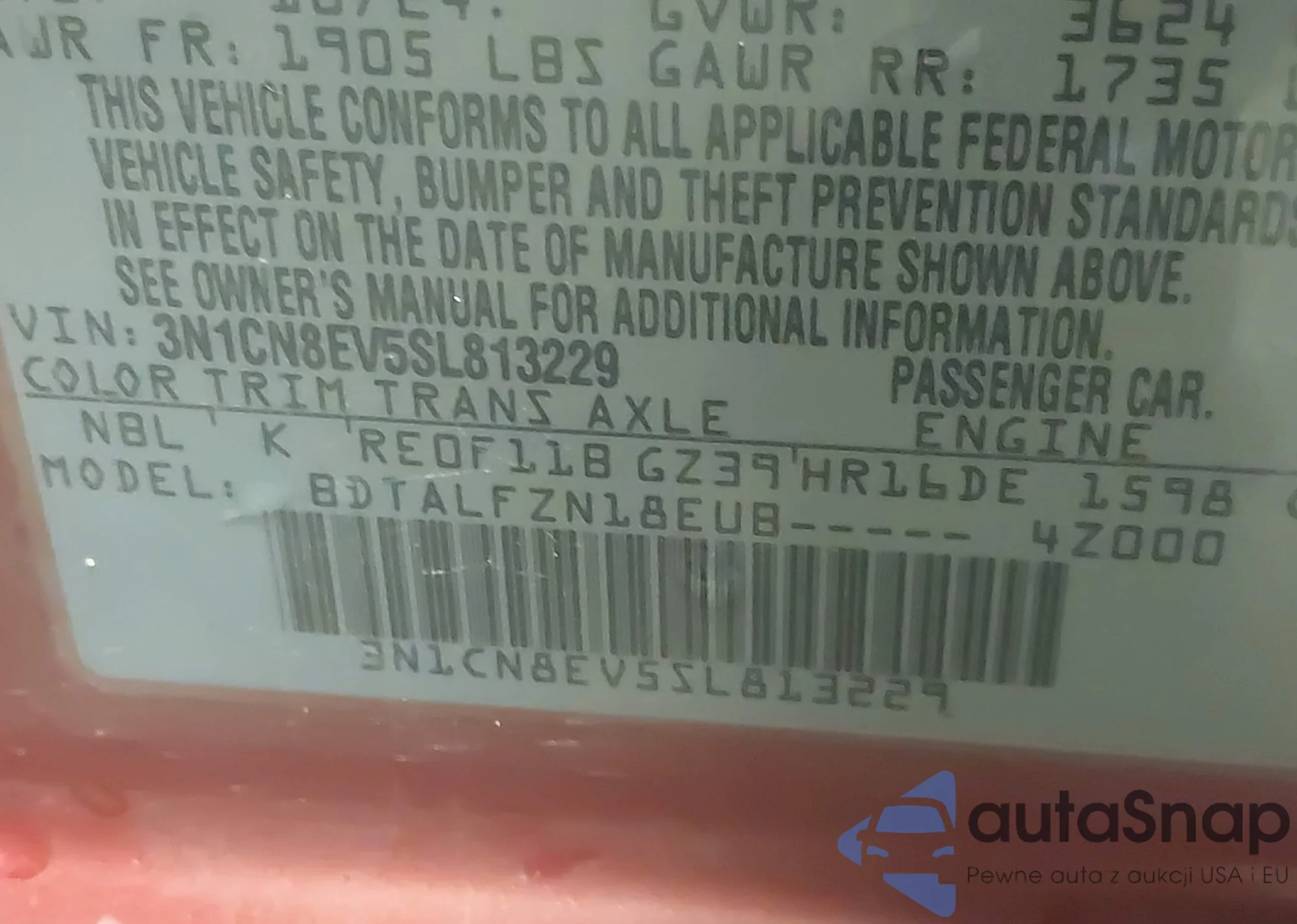 • VIN 3N1CN8EV5SL813229