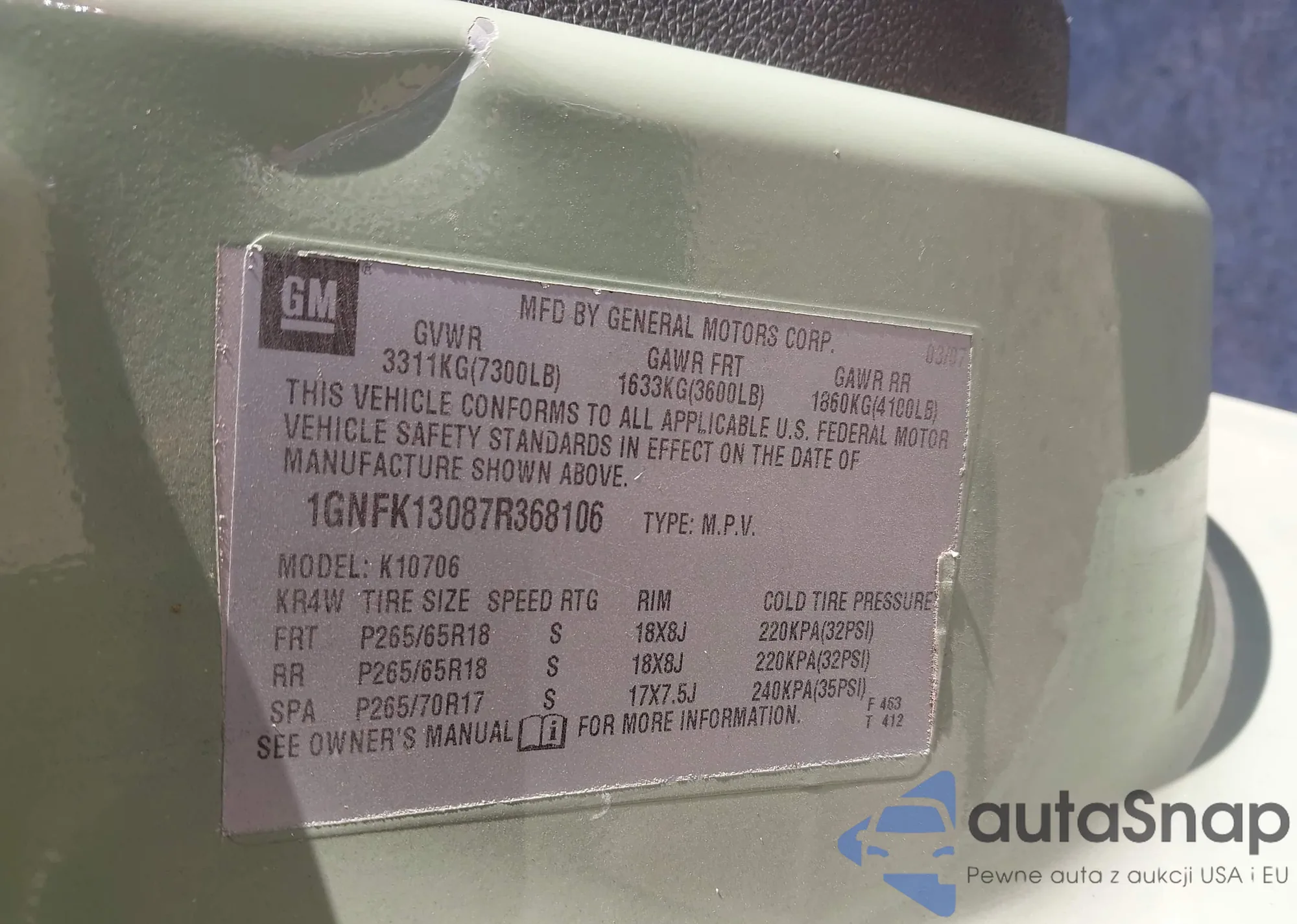 LOT: 44186333 VIN: 1GNFK13087R368106