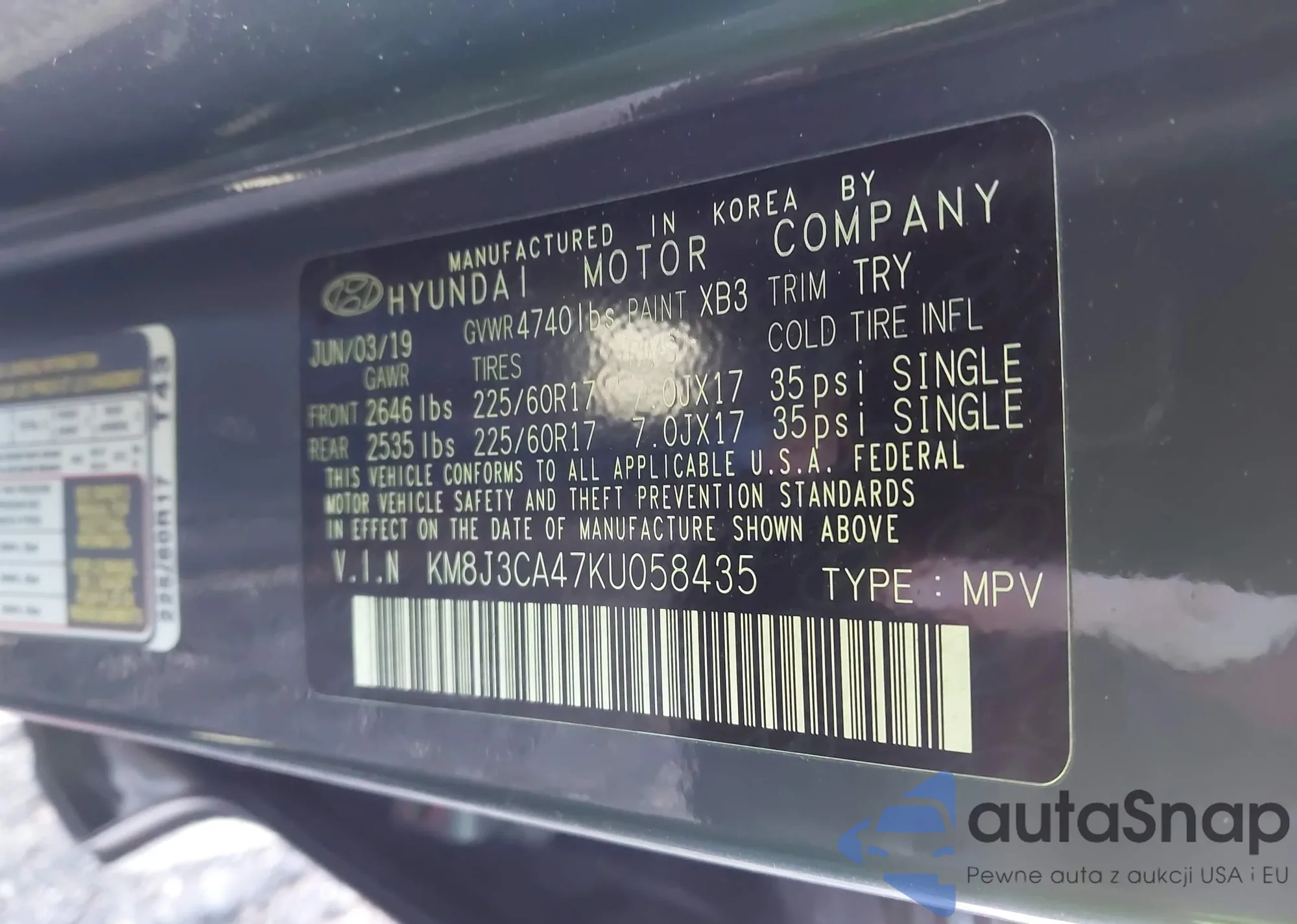 • VIN KM8J3CA47KU058435