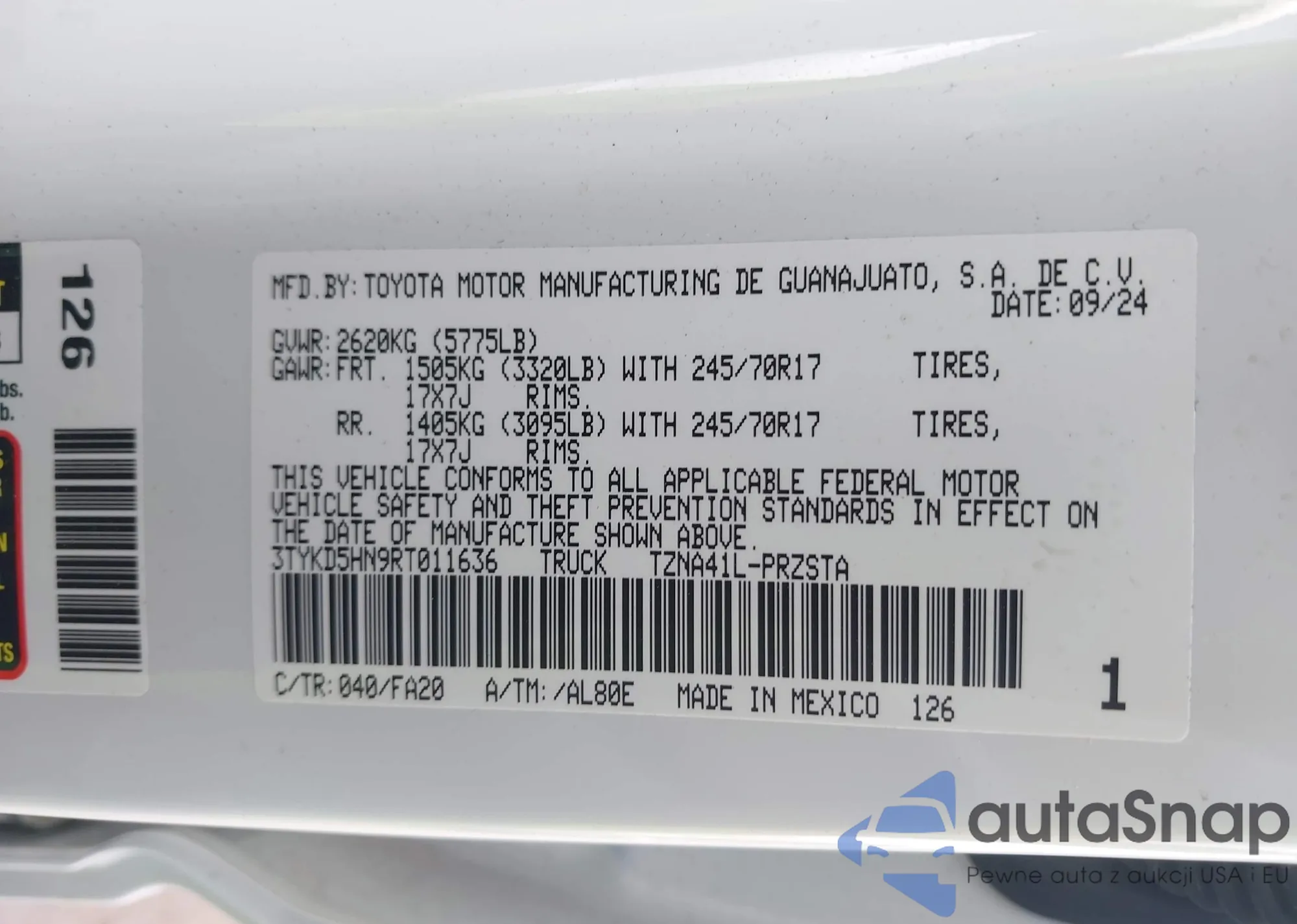 • VIN 5YFEPMAE0MP163729