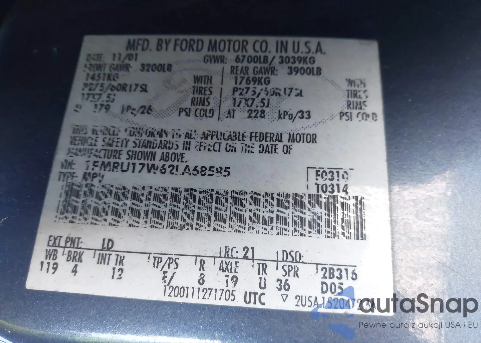• VIN 1FMRU17W62LA68585