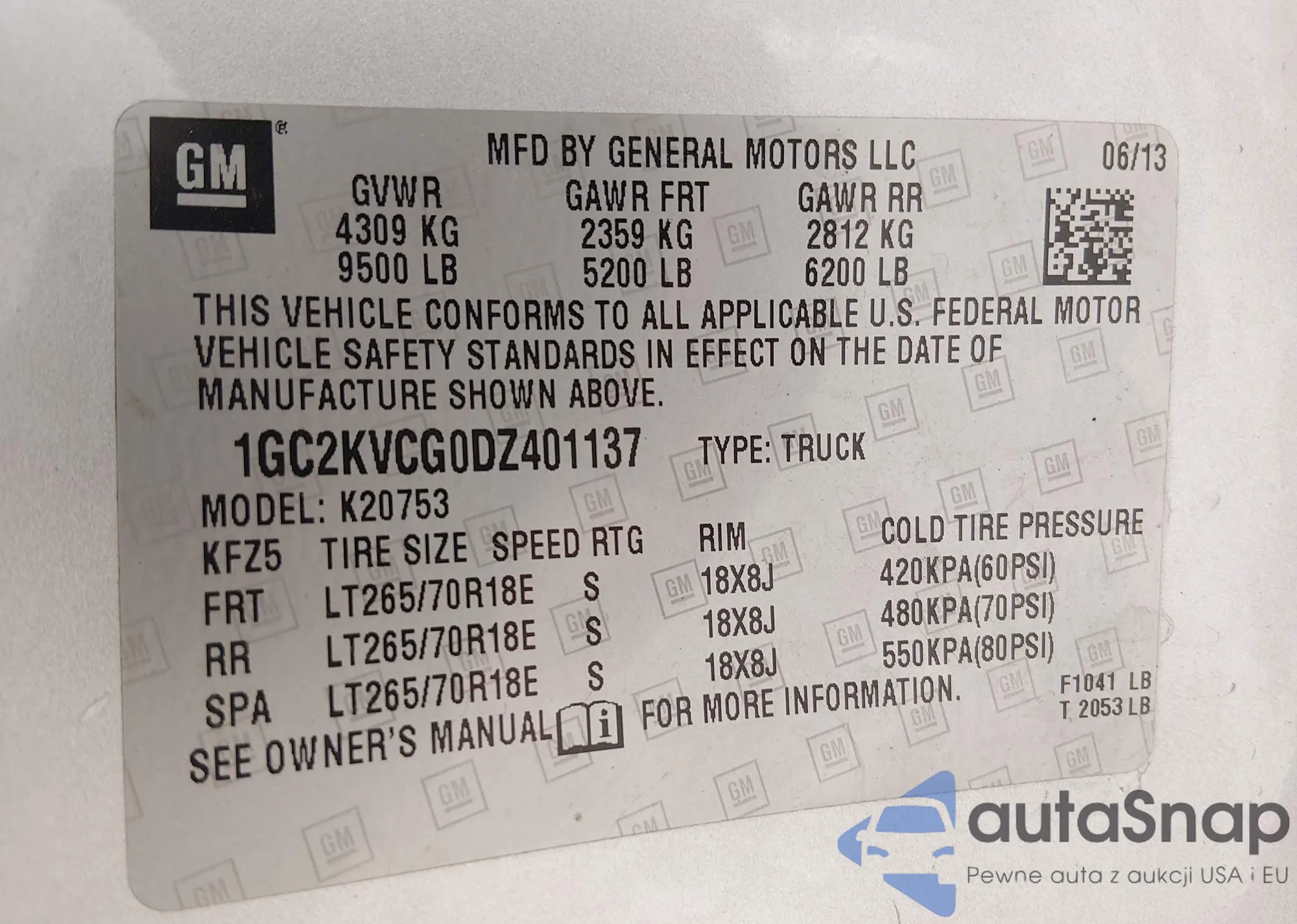• VIN 1GC2KVCG0DZ401137