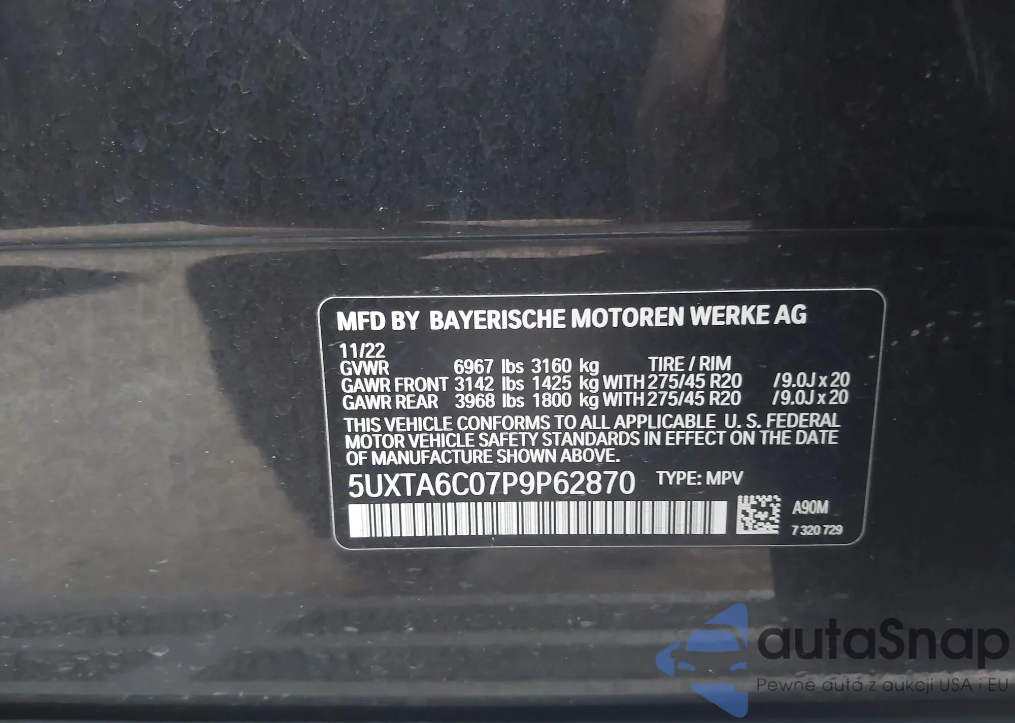 • VIN 5UXTA6C07P9P62870
