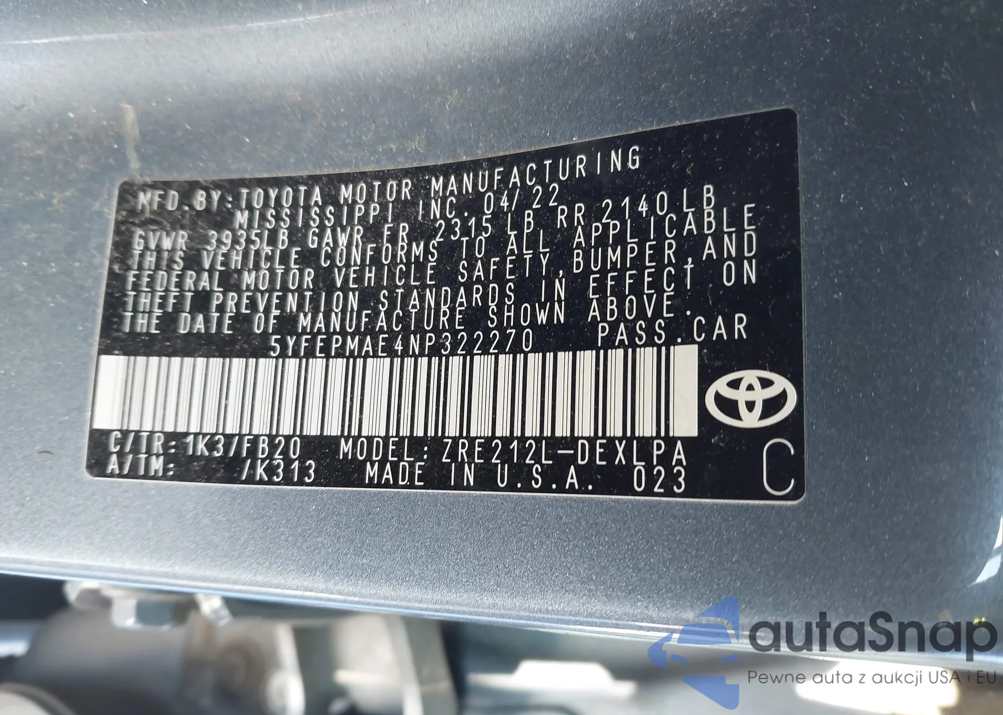 LOT: 43842060 VIN: 1NXBR32E65Z458128