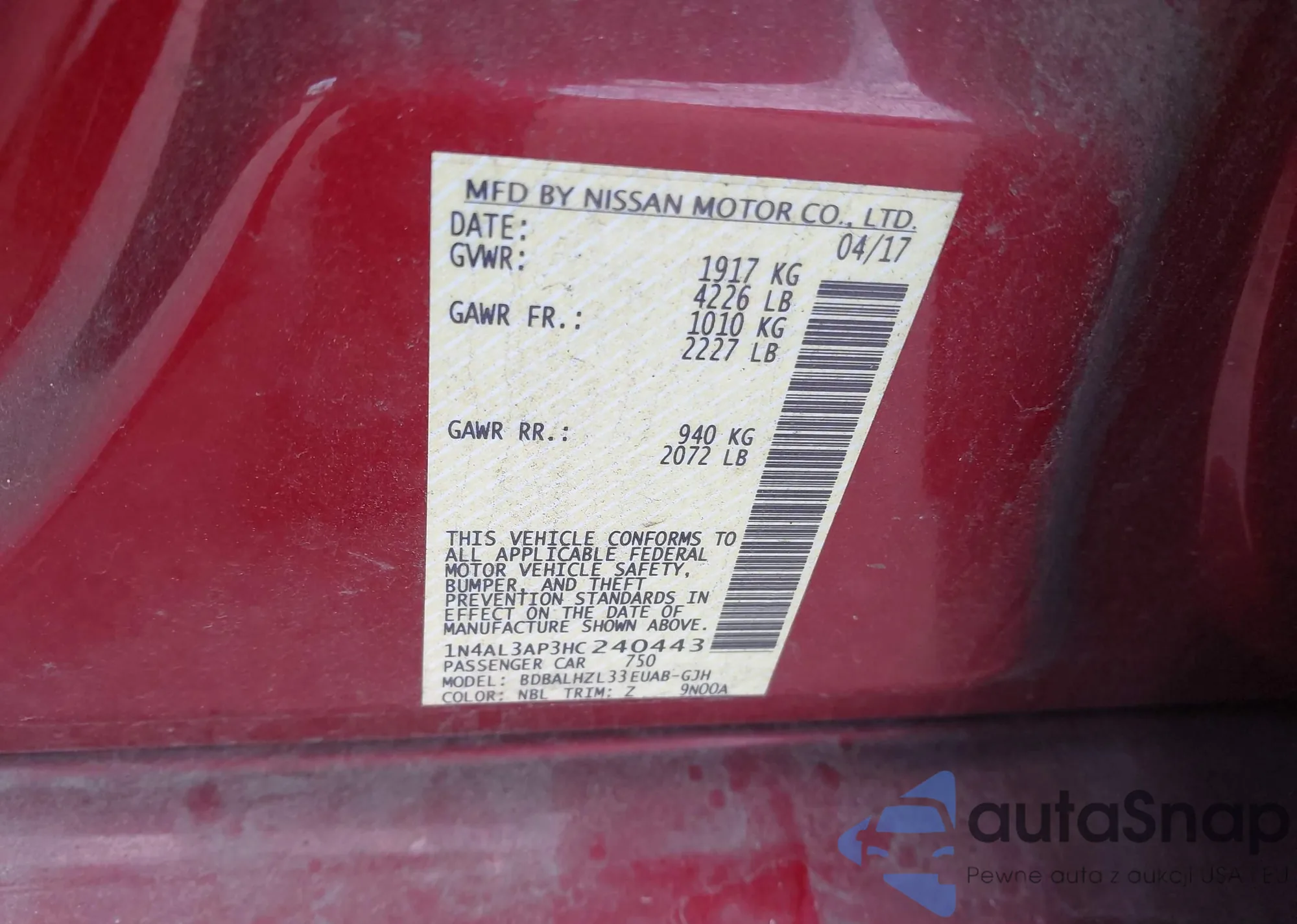 LOT: 44132051 VIN: 1N4AL3AP3HC240443