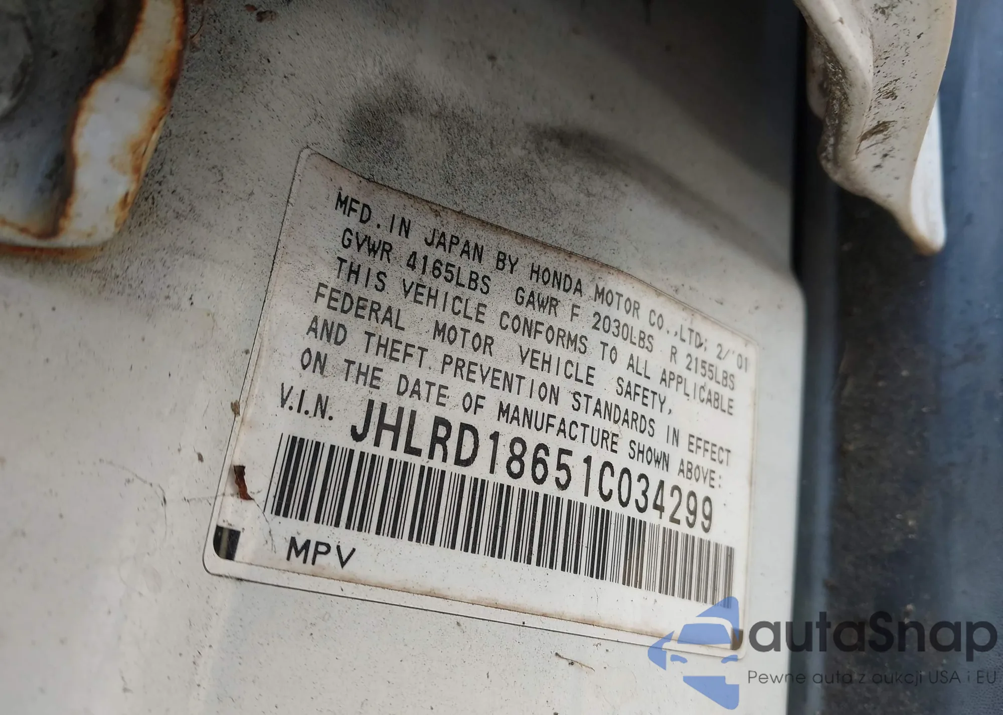 • VIN JHLRD18651C034299