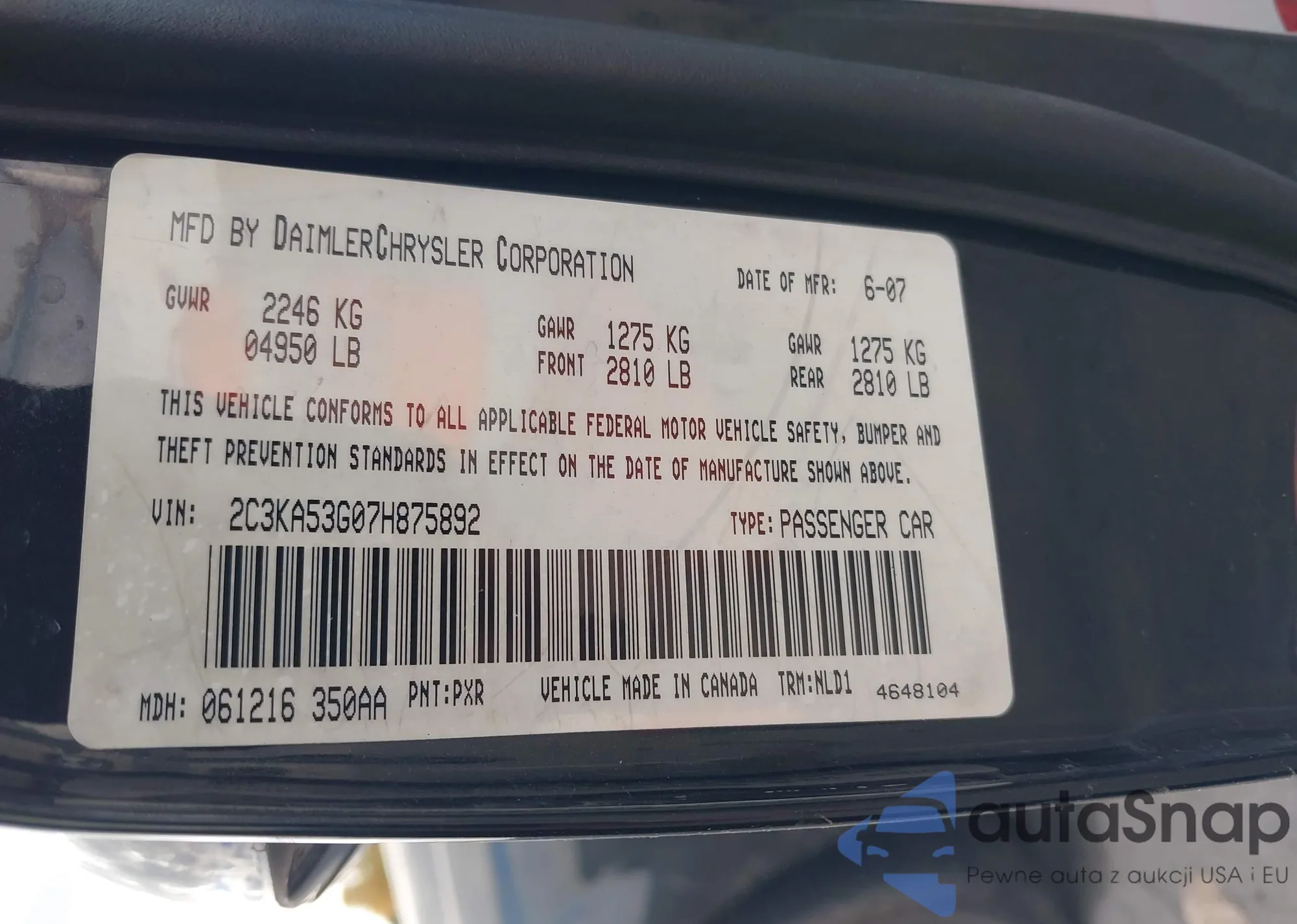 • VIN 2C3KA53G07H875892
