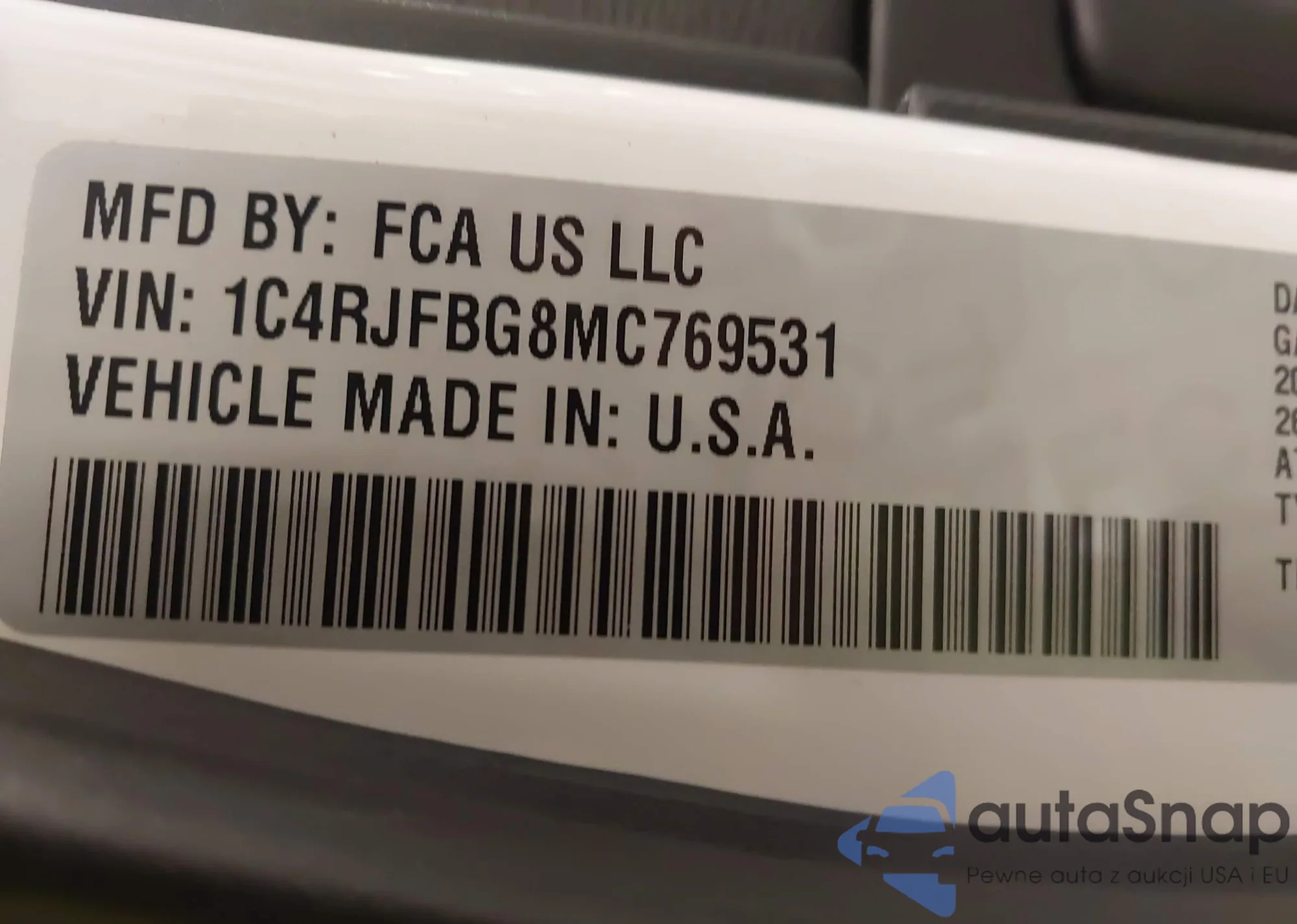 • VIN 1C4RJFBG8MC769531