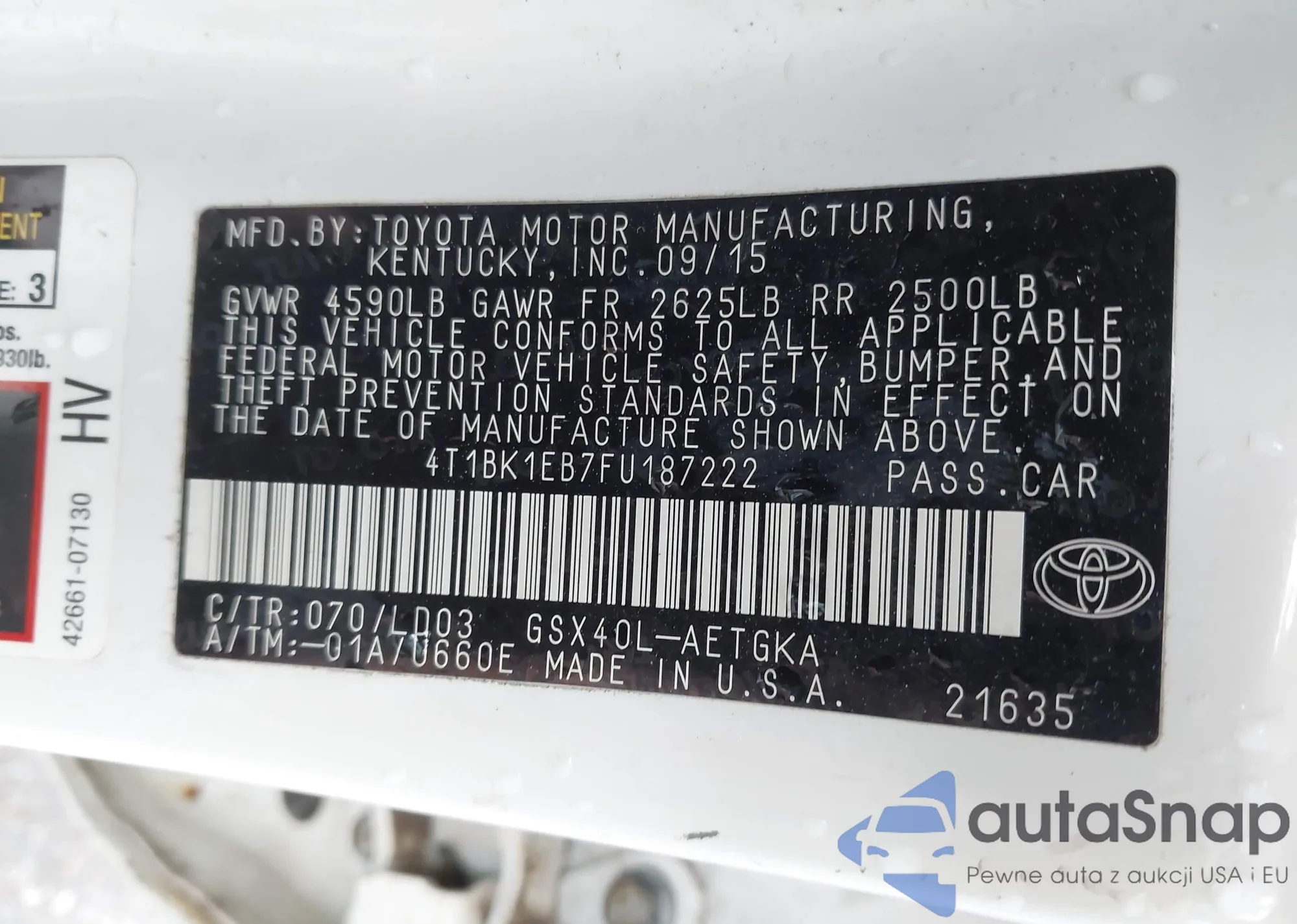 LOT: 44098727 VIN: 4T1BK1EB7FU187222