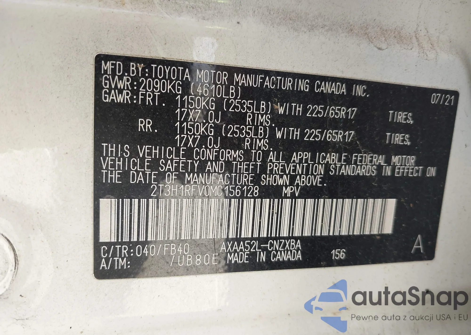LOT: 44074651 VIN: JTNKHMBX1M1111283