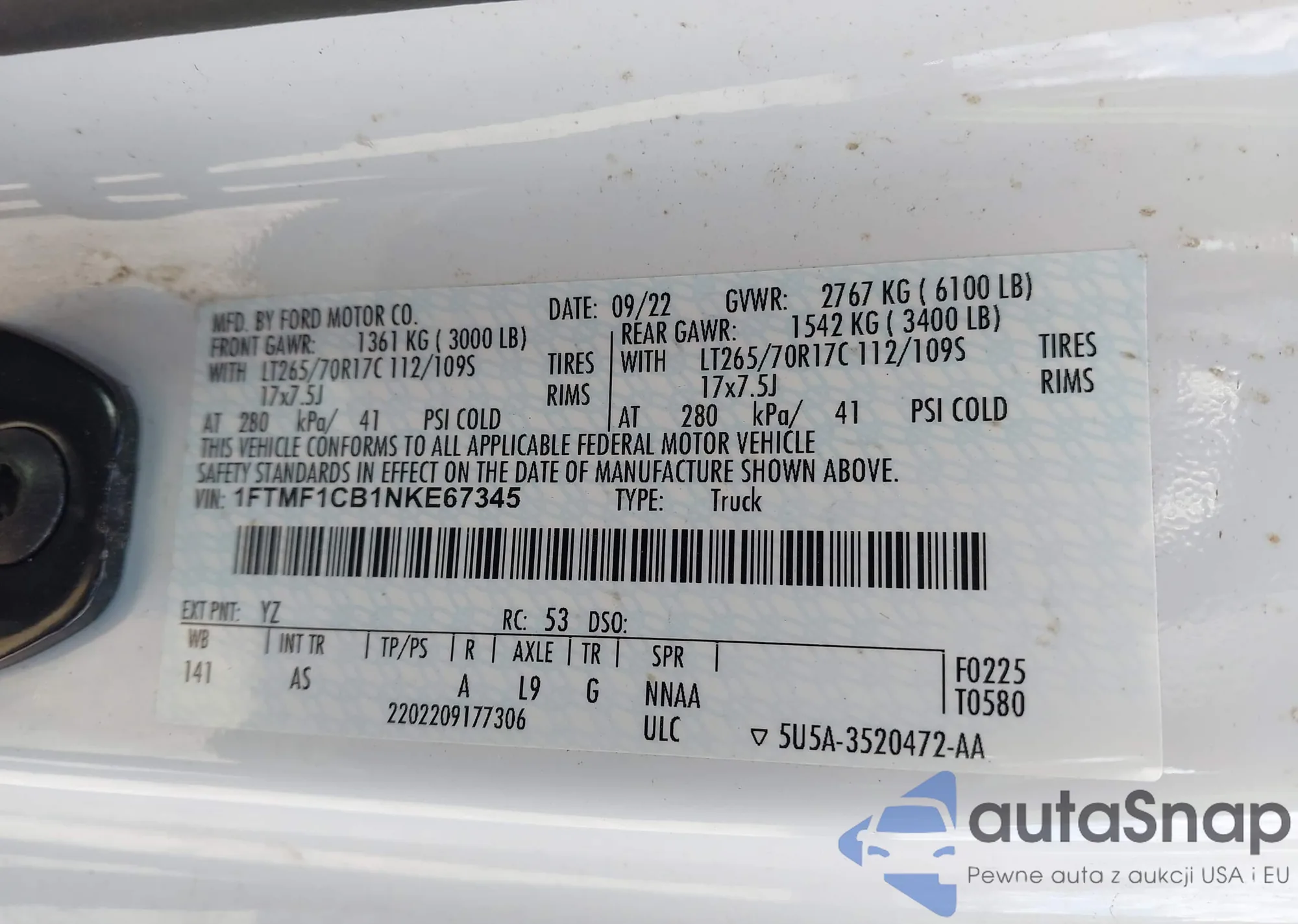 LOT: 43904847 VIN: 1FTEW3KP0SFA75765