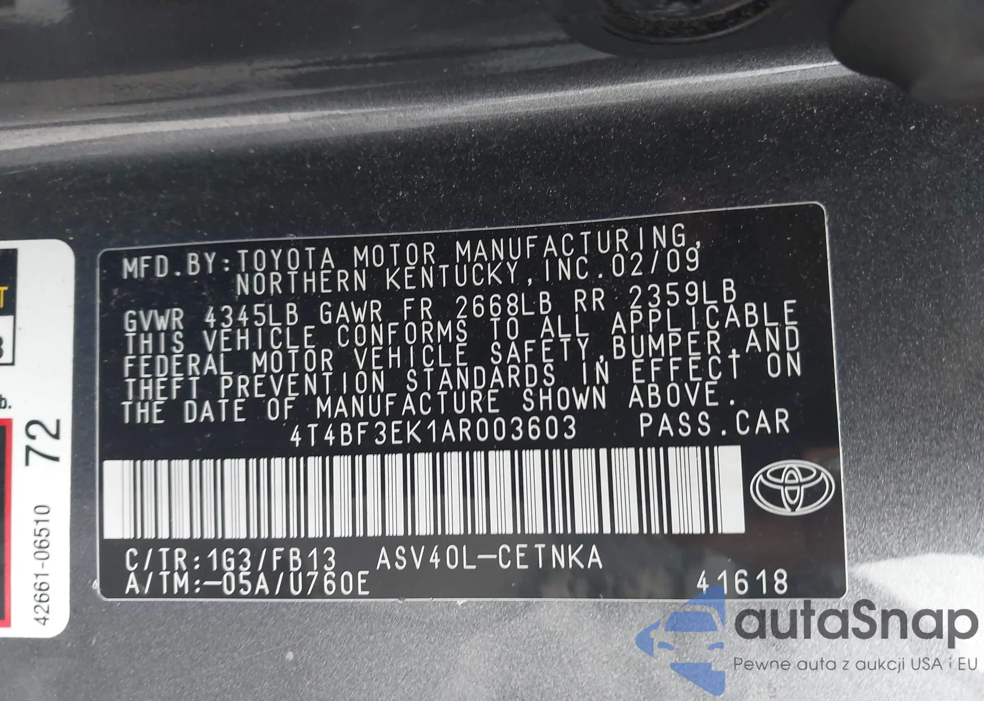 • VIN 4T4BF3EK1AR003603