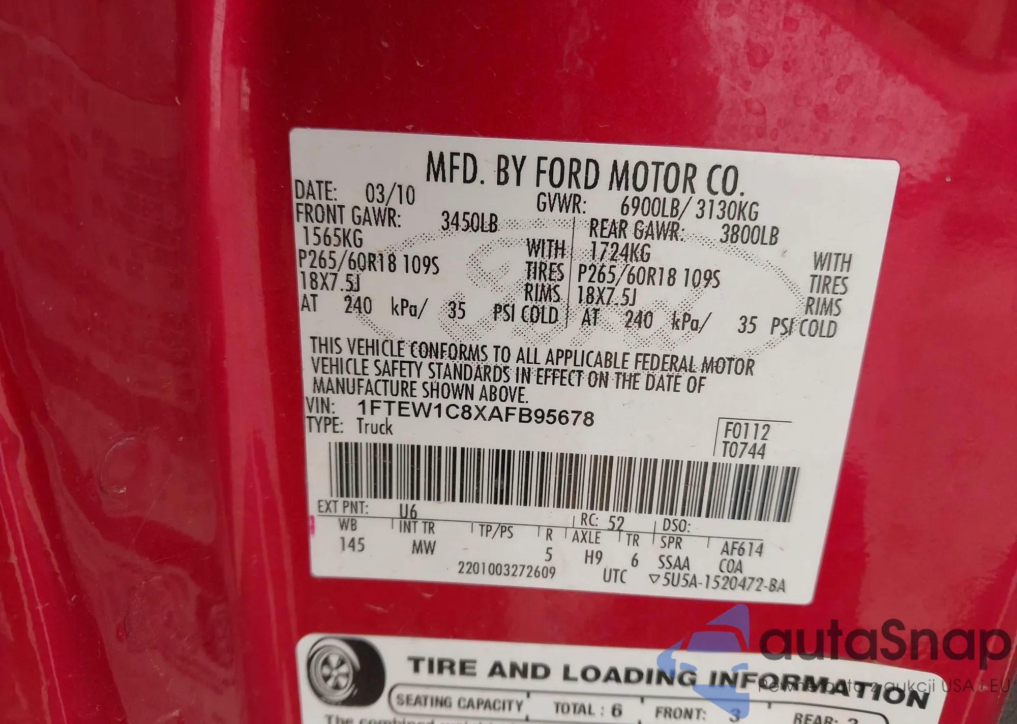 • VIN 1FTEW1C8XAFB95678