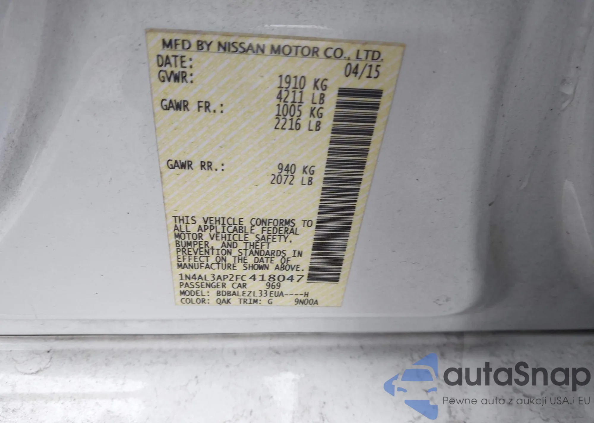 • VIN 1N4AL3AP2FC418047