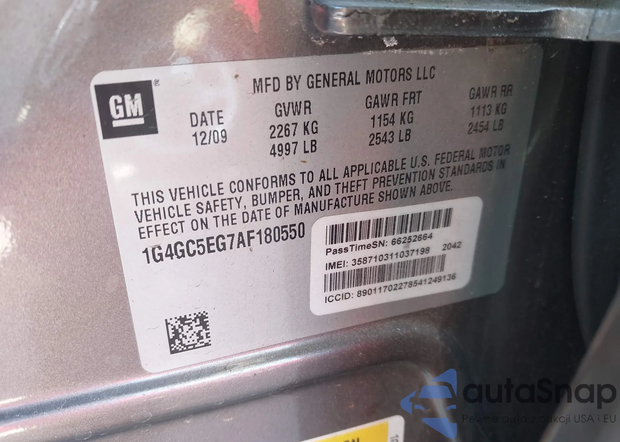 • VIN 1G4GC5EG7AF180550
