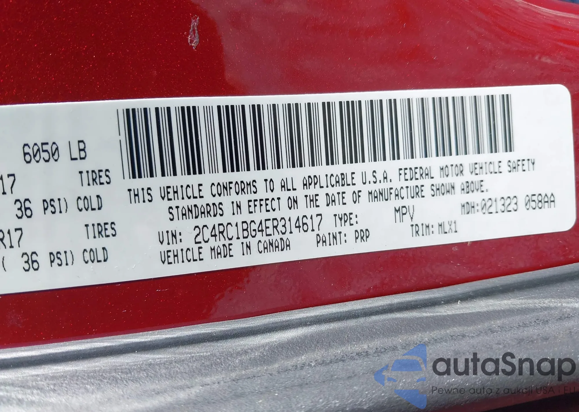 • VIN 2C4RC1BG4ER314617