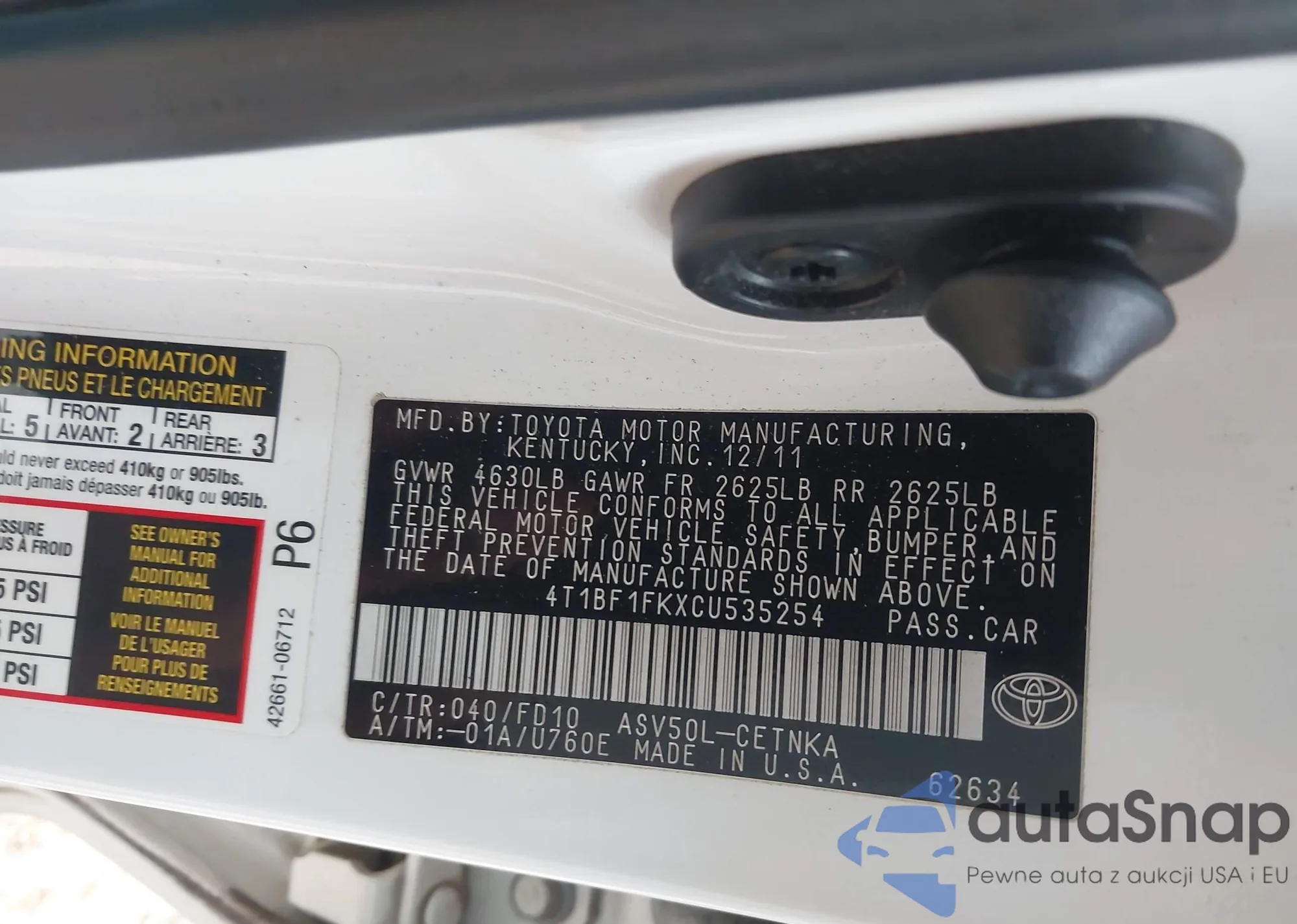 LOT: 44145178 VIN: 4T1B61HK8KU249396
