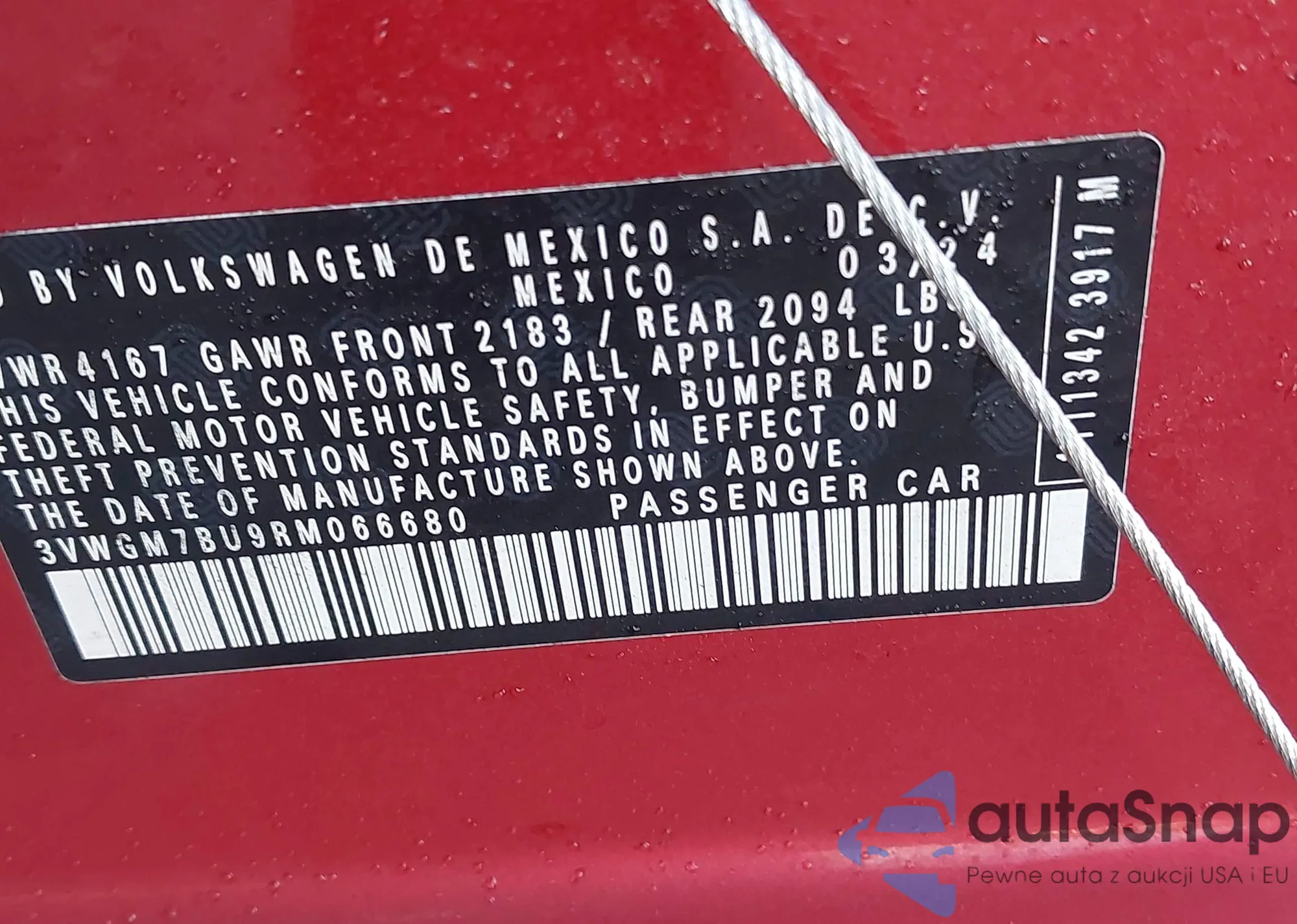 • VIN 3VWGM7BU9RM066680