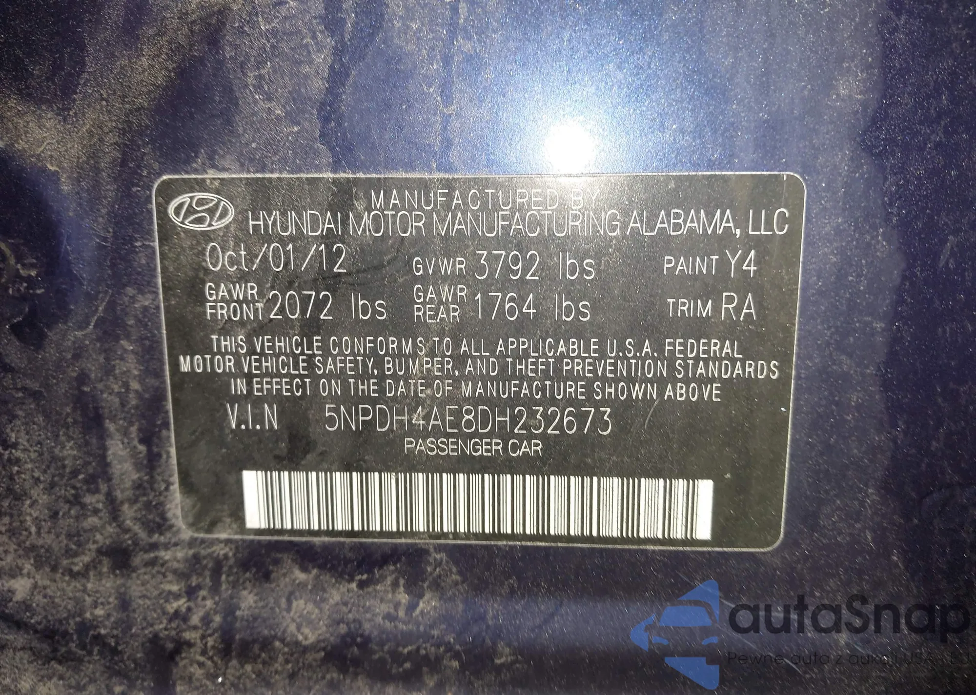 LOT: 44243846 VIN: 2HNYD2H43BH502469