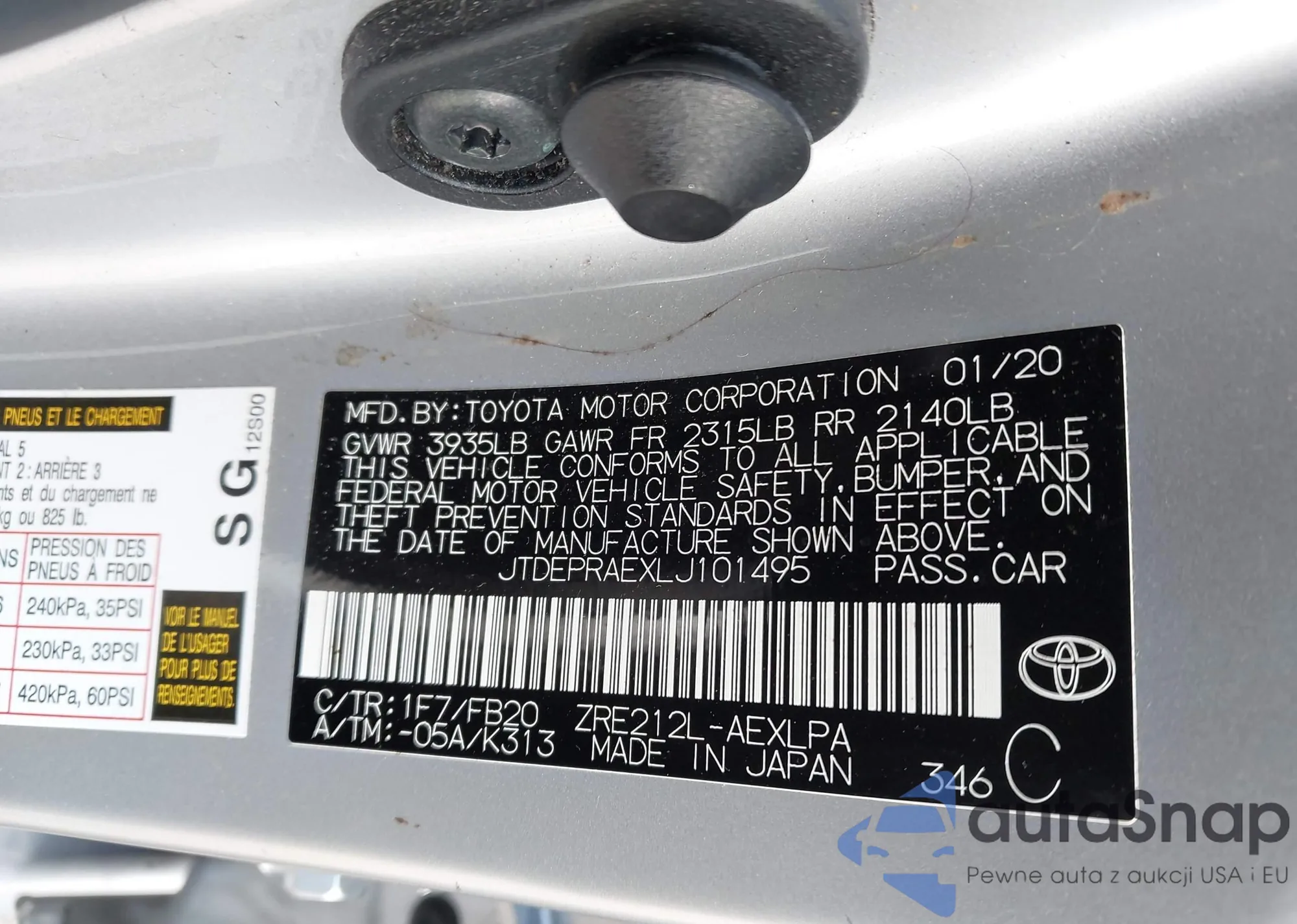 LOT: 43951848 VIN: JTDEPRAEXLJ101495
