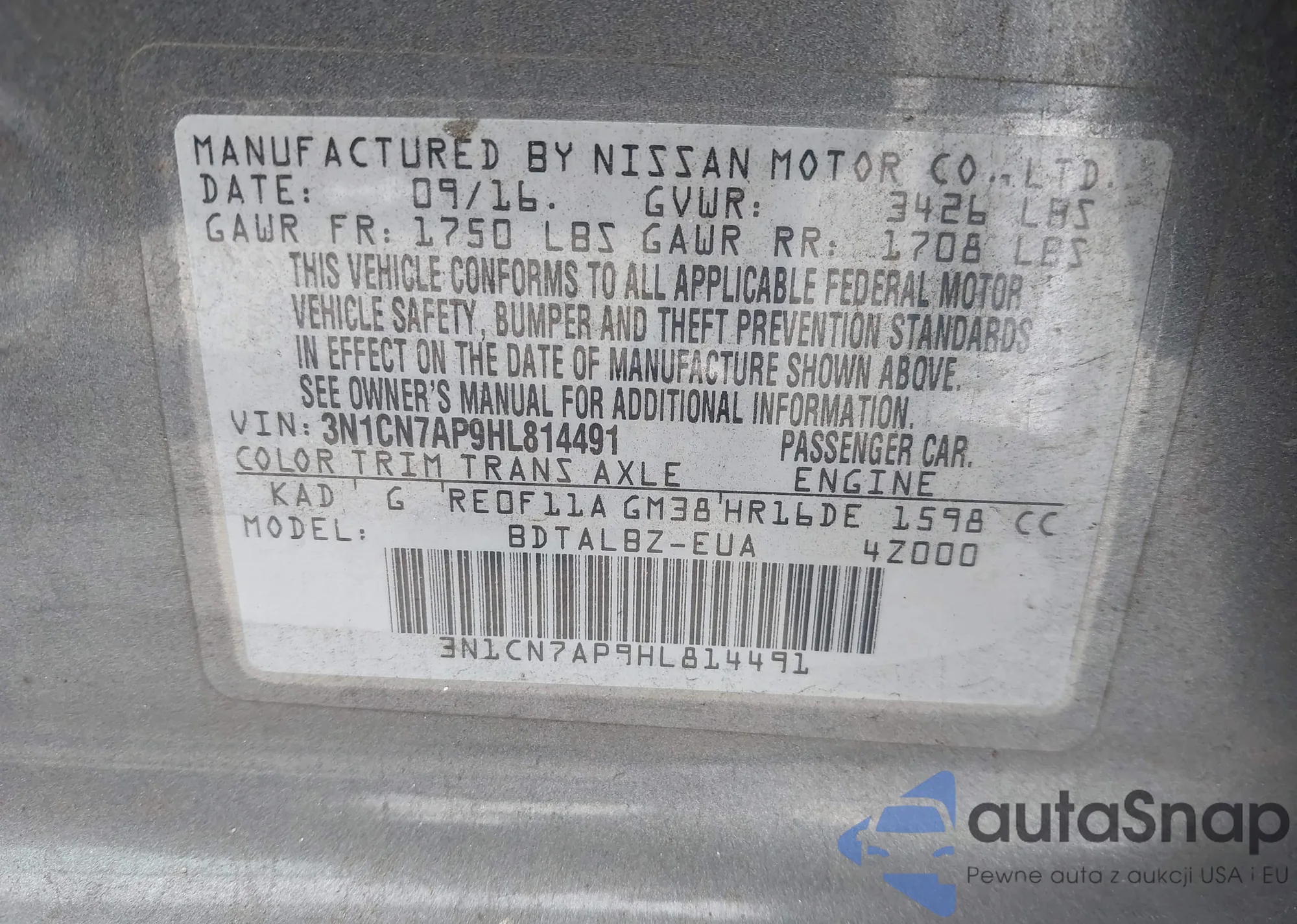 • VIN 3N1CP5BV3LL565125