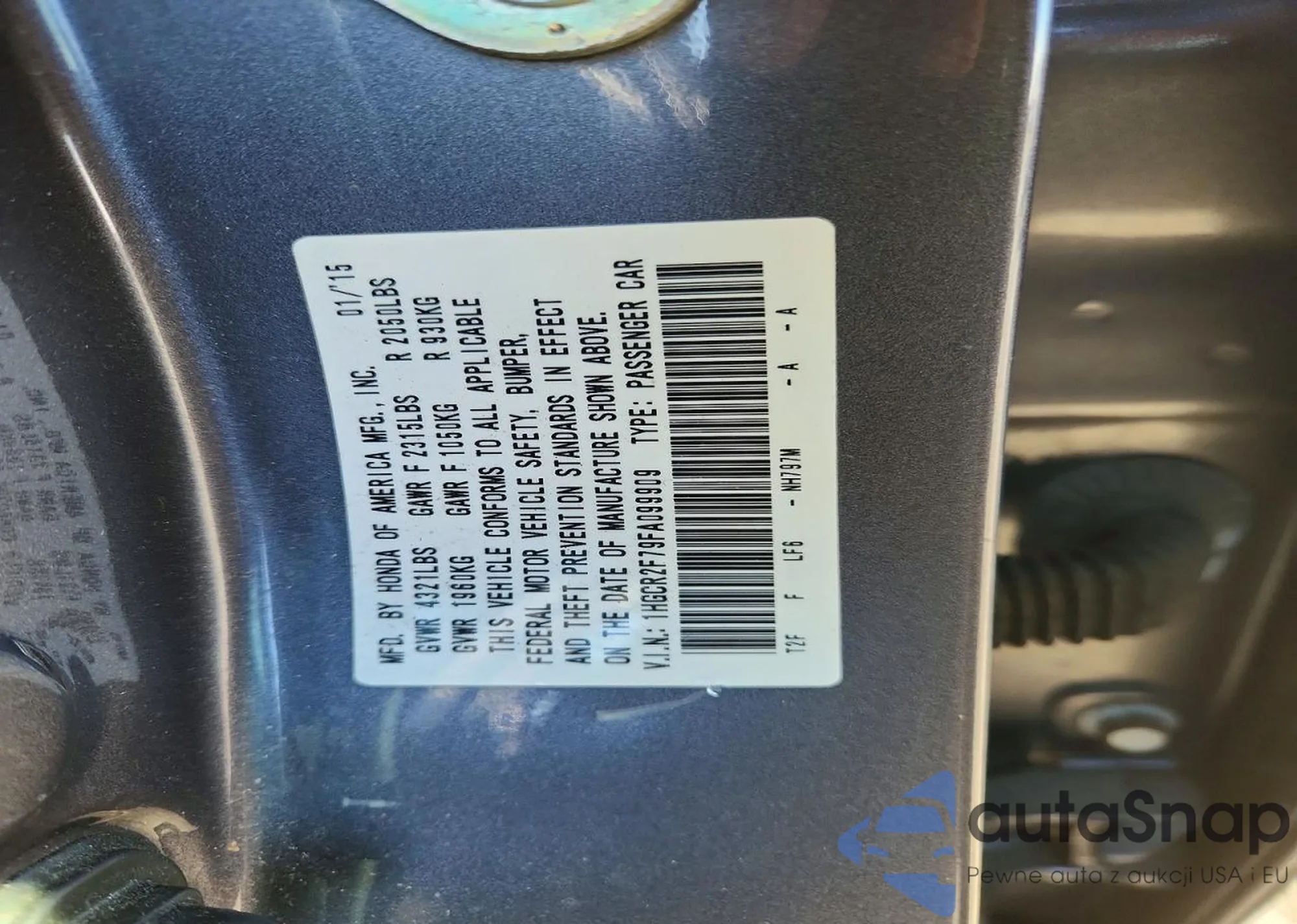 LOT: 72614875 VIN: 1HGCR2F79FA099909