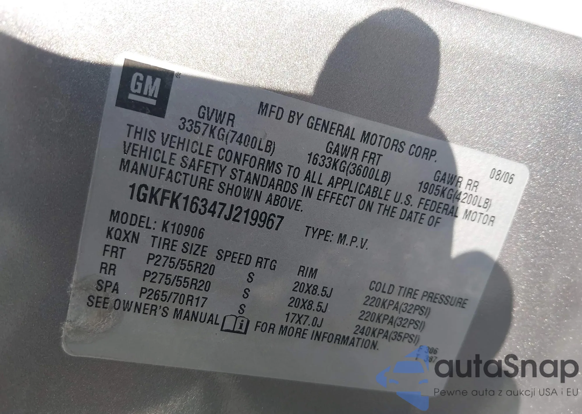 LOT: 44239635 VIN: 1GKFK16347J219967