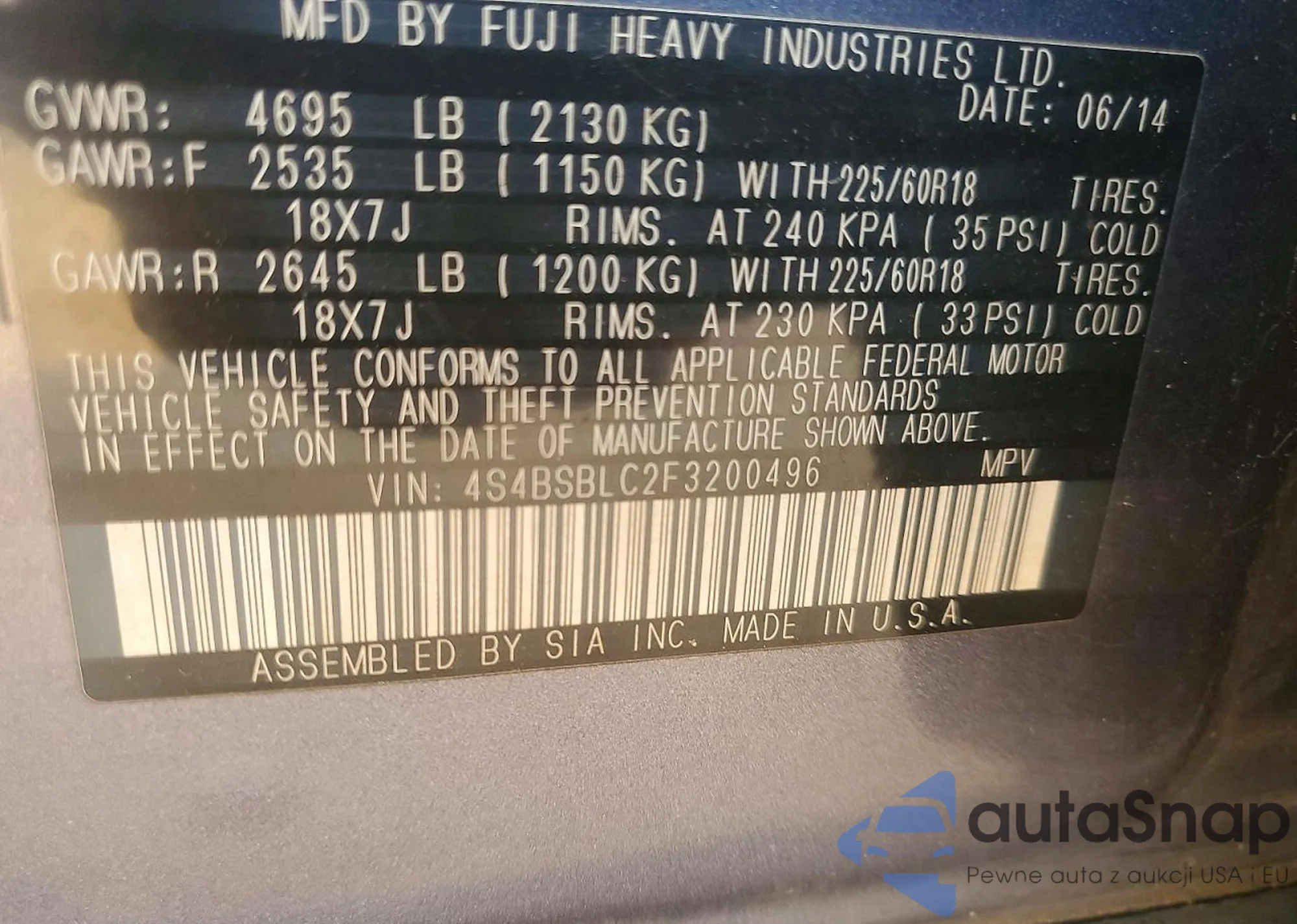 LOT: 99109455 VIN: JF2SJAJC6HH497557