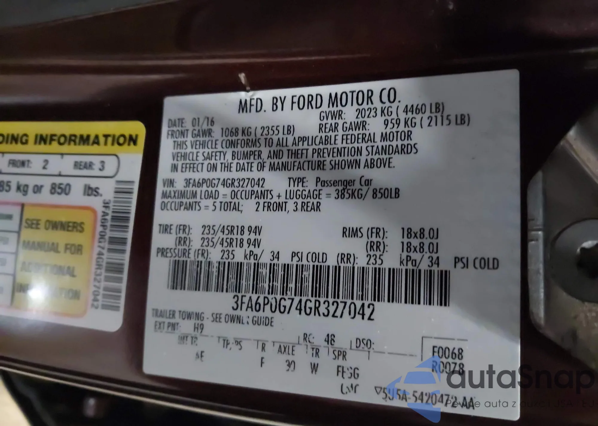 • VIN 3FA6P0G74GR327042
