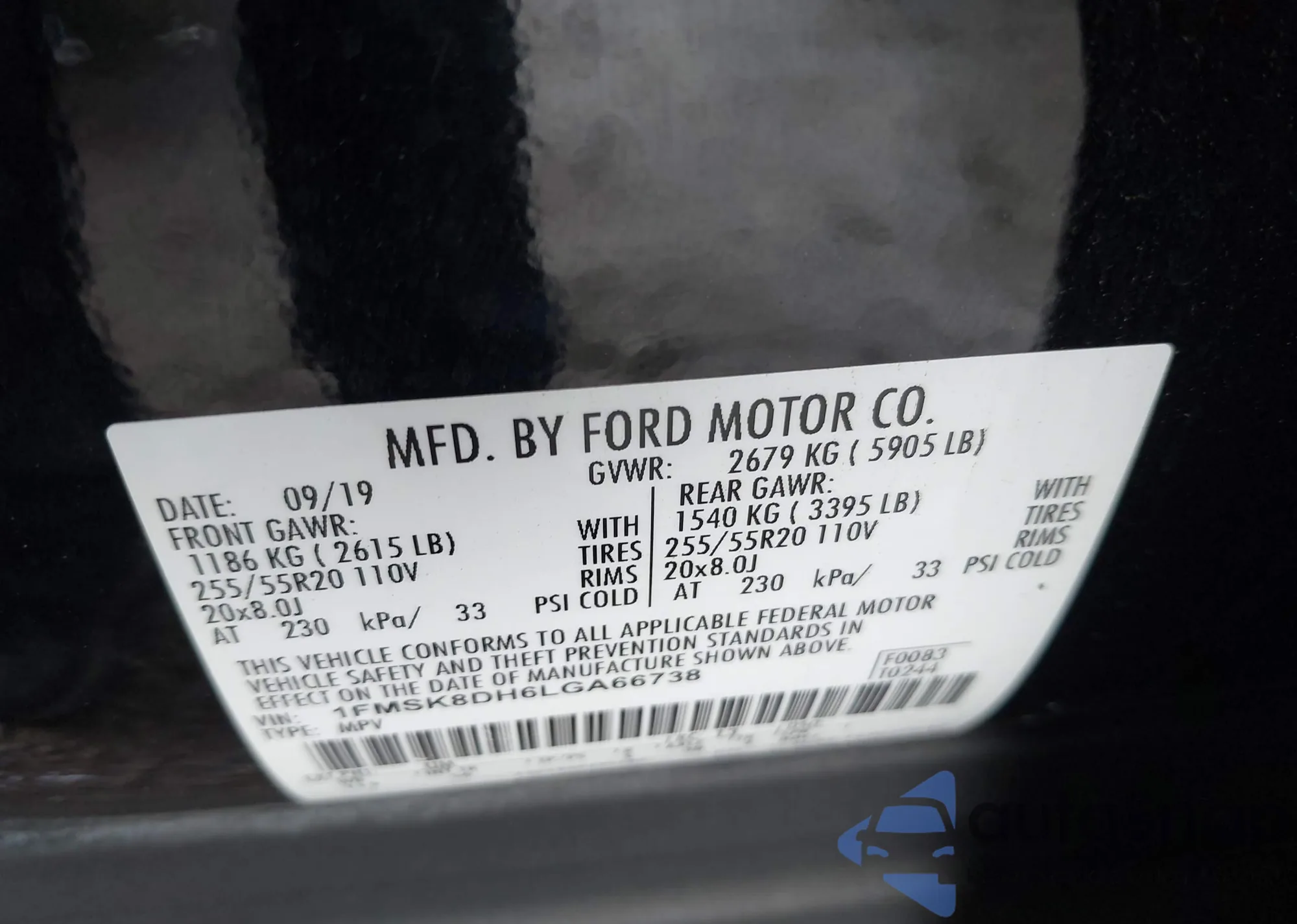 • VIN 1FMSK8DH6LGA66738