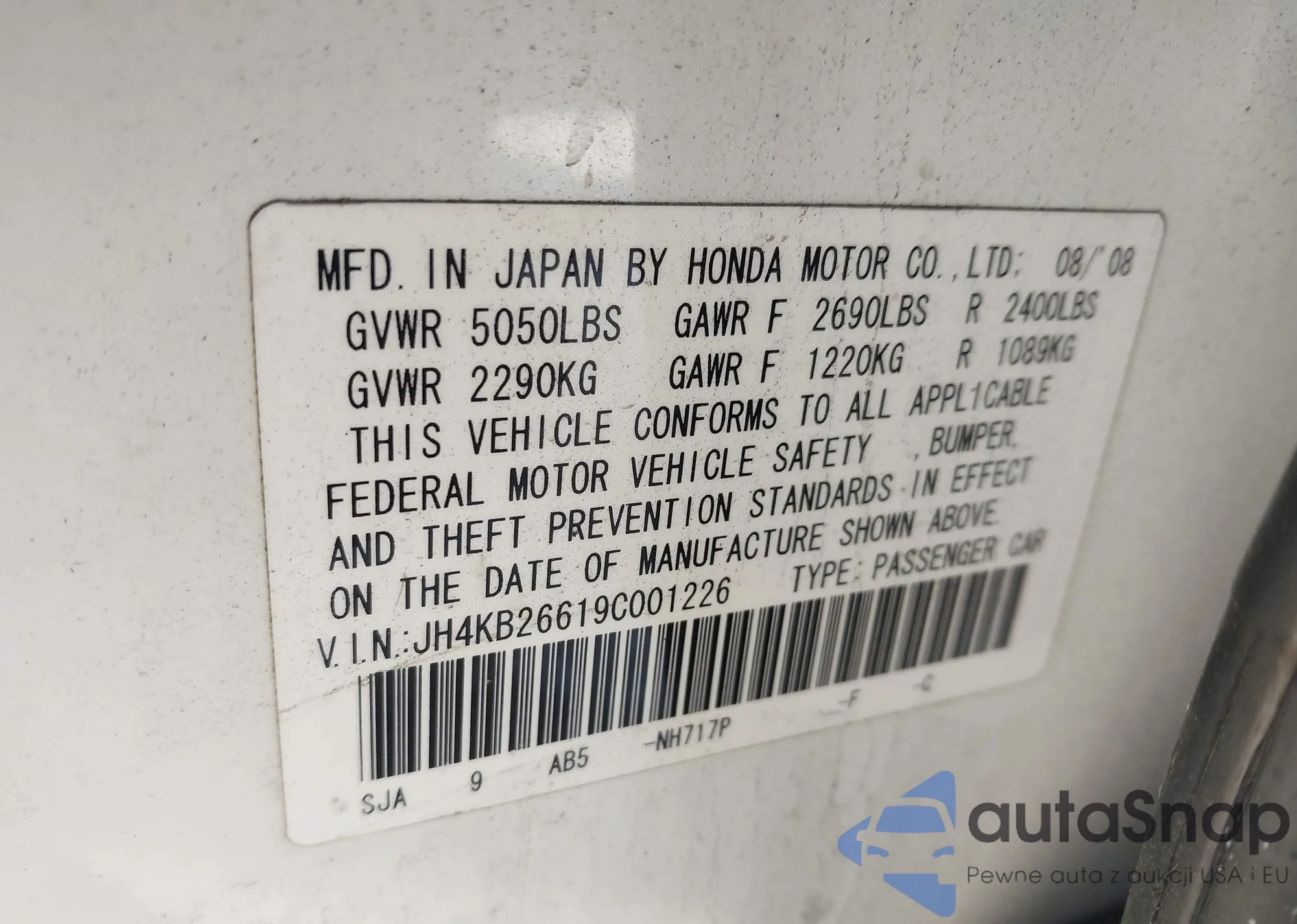 LOT: 44050550 VIN: 1NXBR30E48Z050959