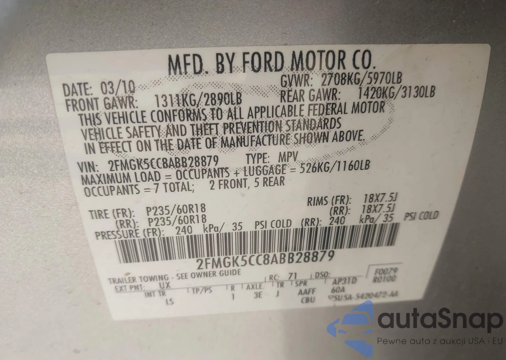 • VIN 2FMGK5CC8ABB28879