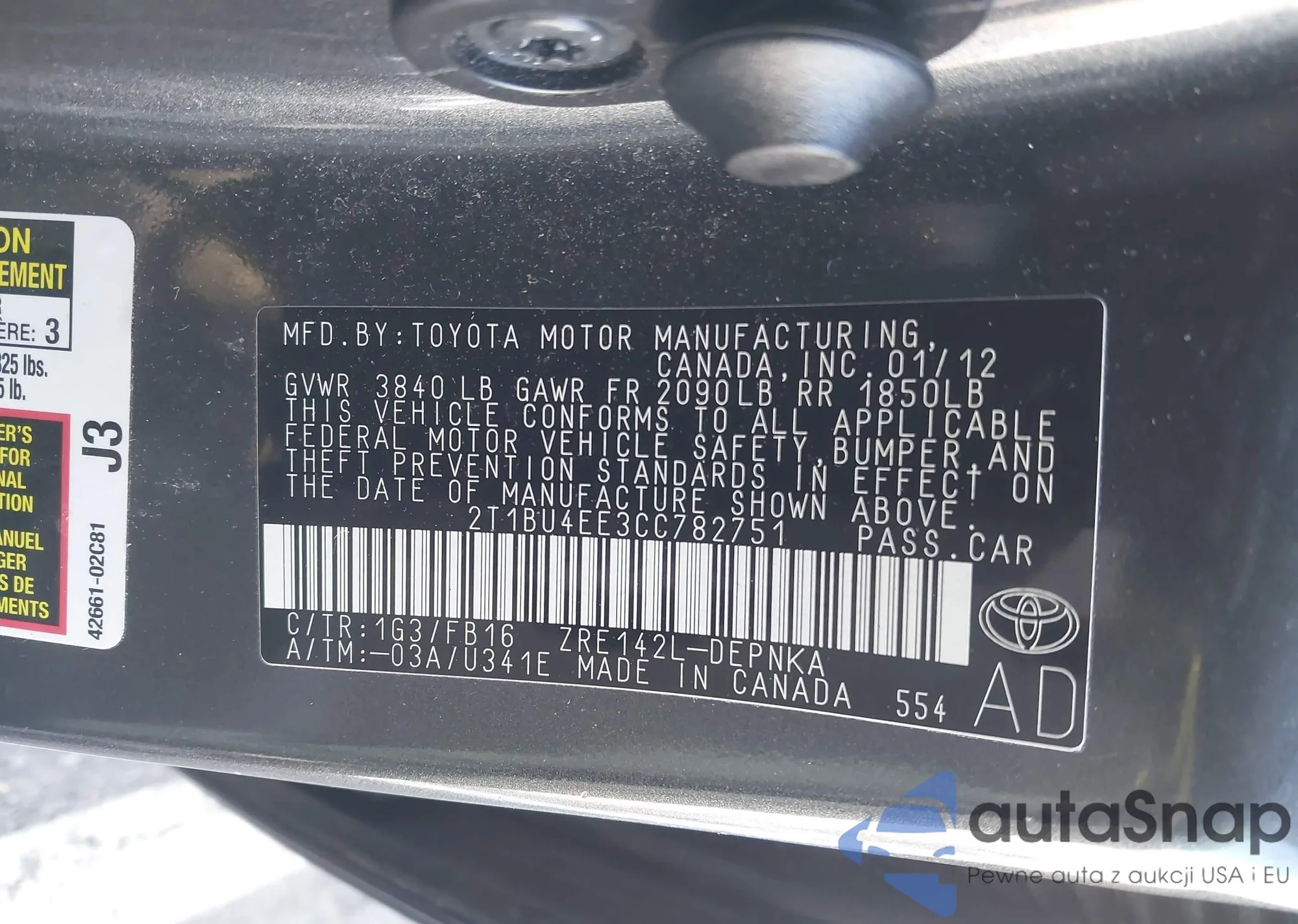 • VIN 2T1BU4EE3CC782751