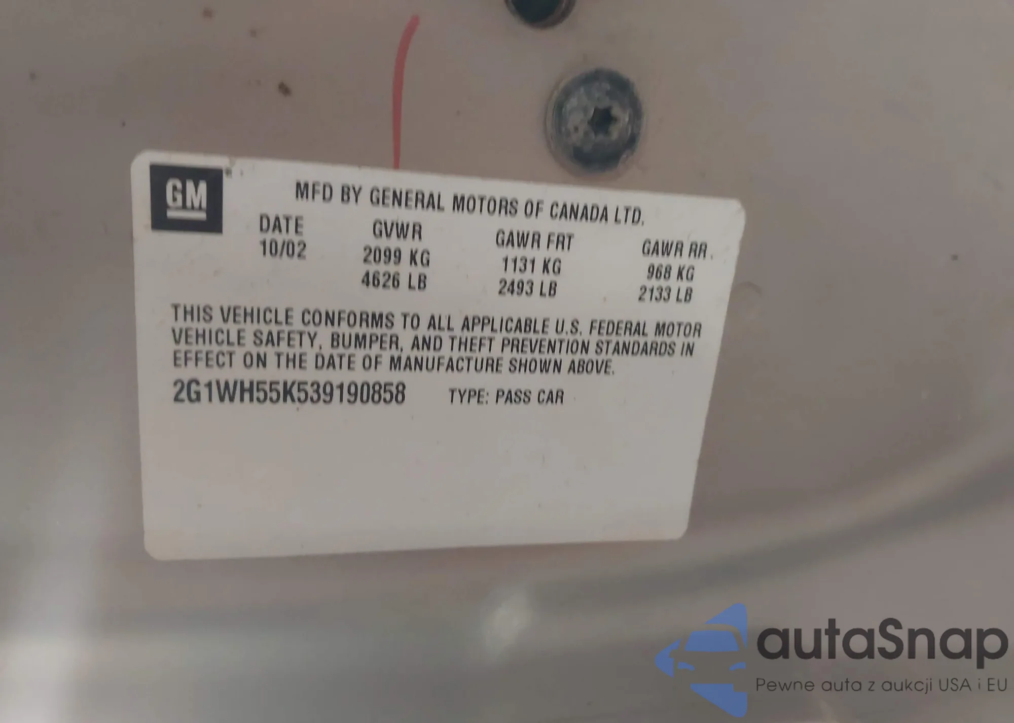 • VIN 2G1WH55K539190858