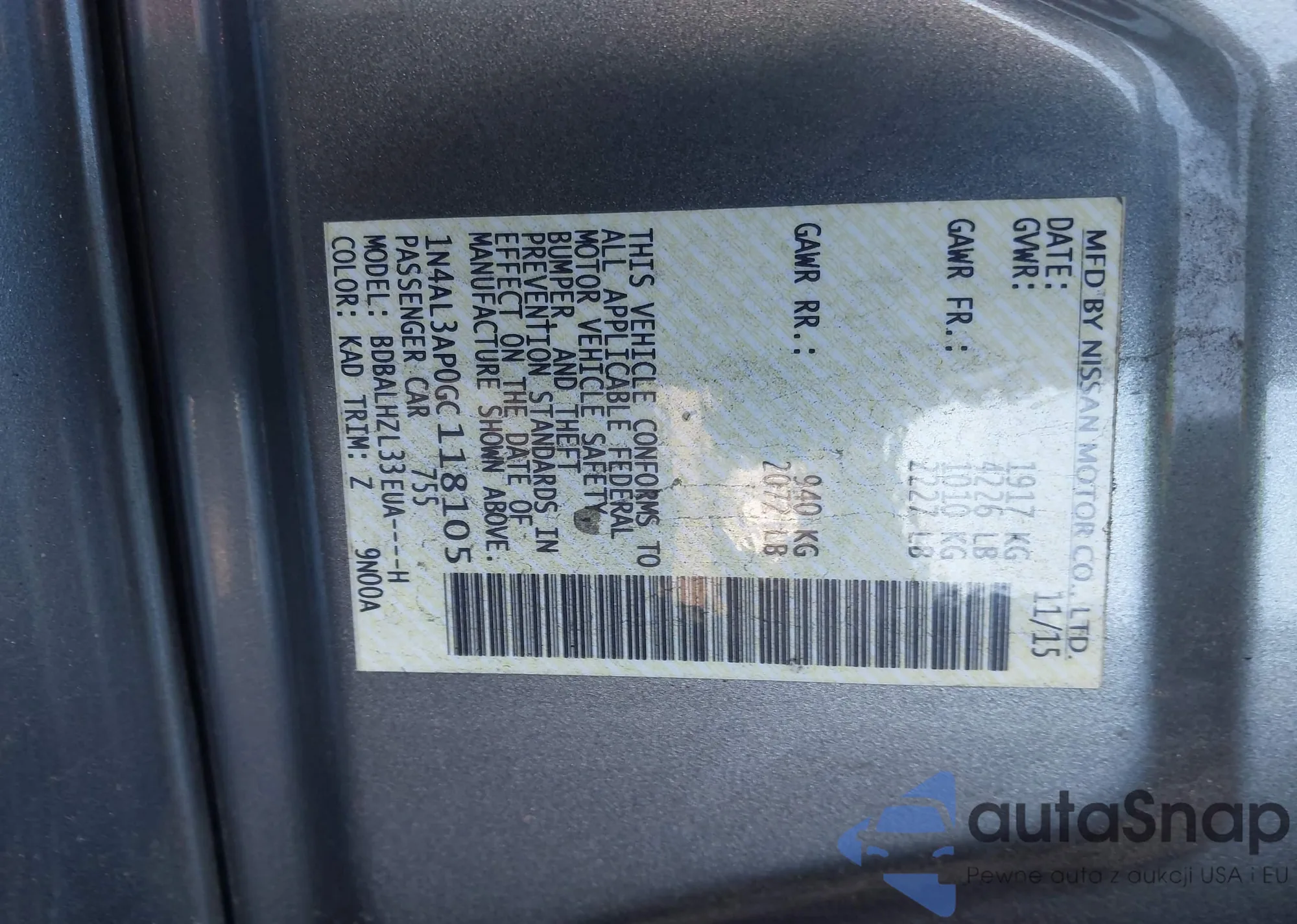 LOT: 43902836 VIN: 1N4AL3AP0GC118105