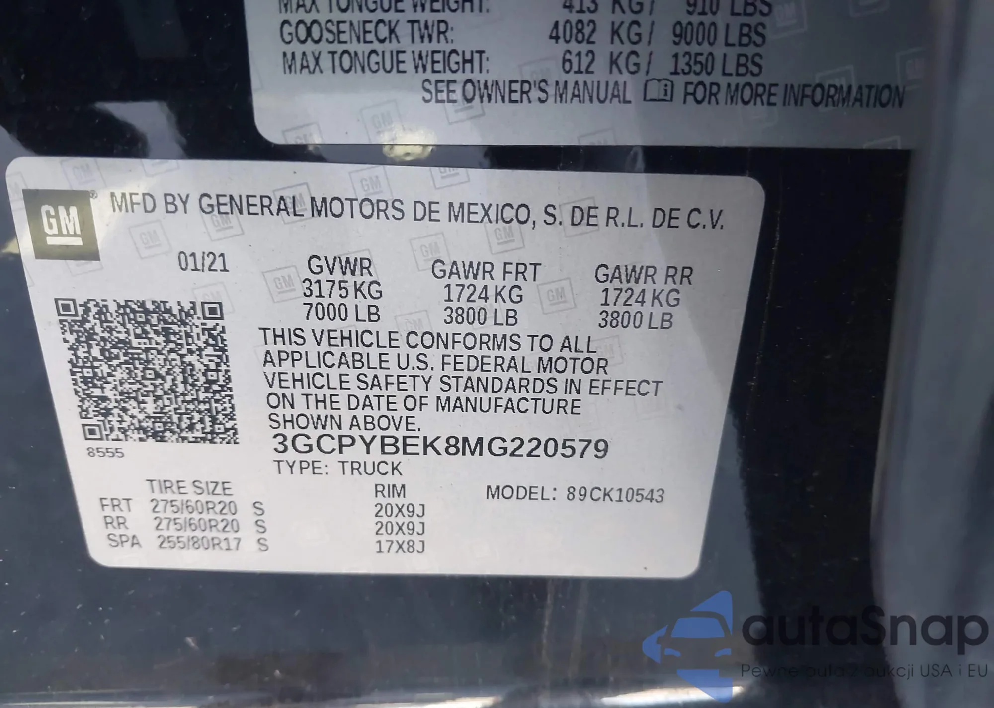 LOT: 43978261 VIN: 3GCPYBEK8MG220579