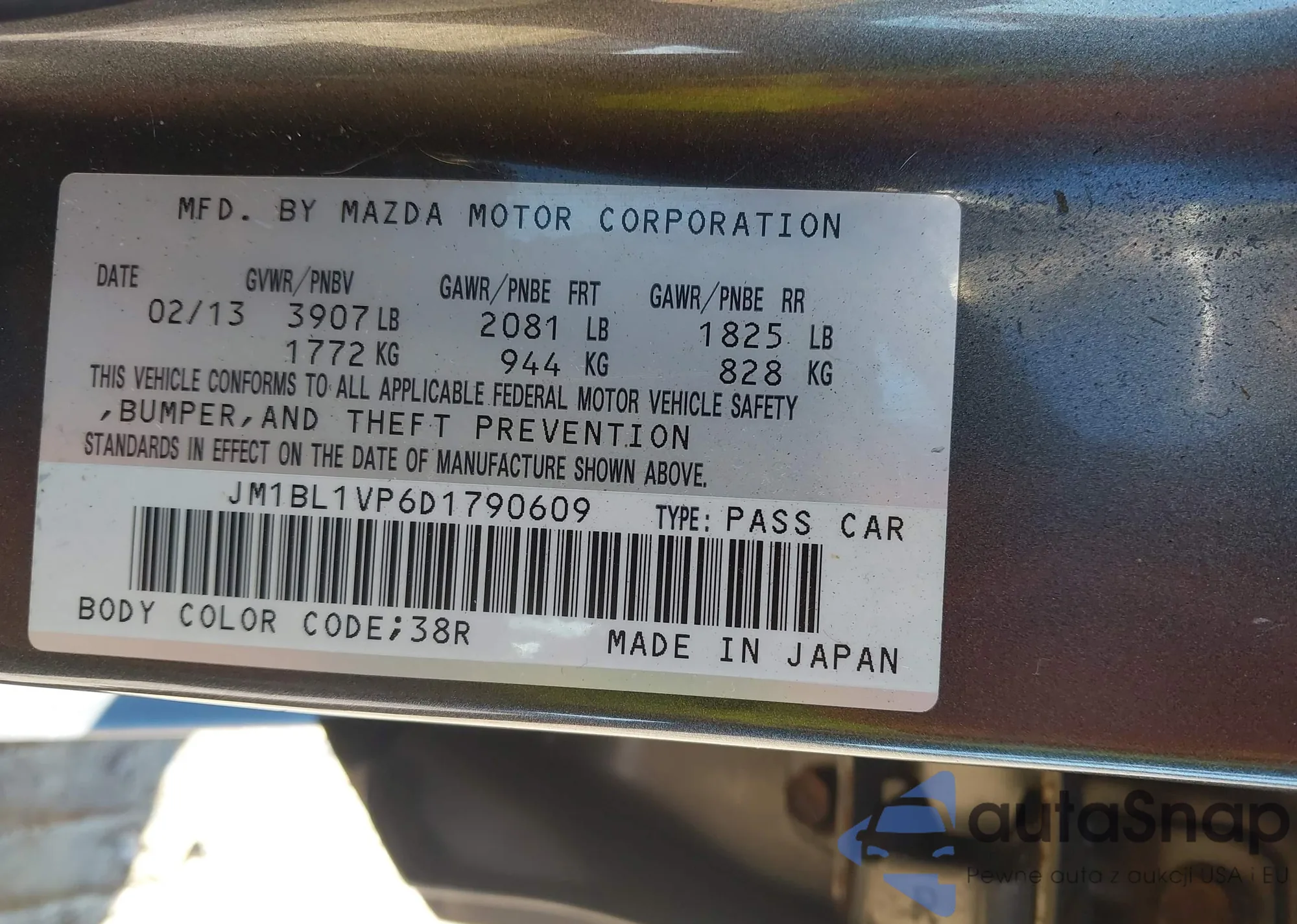 LOT: 44058420 VIN: JM1BL1VP6D1790609