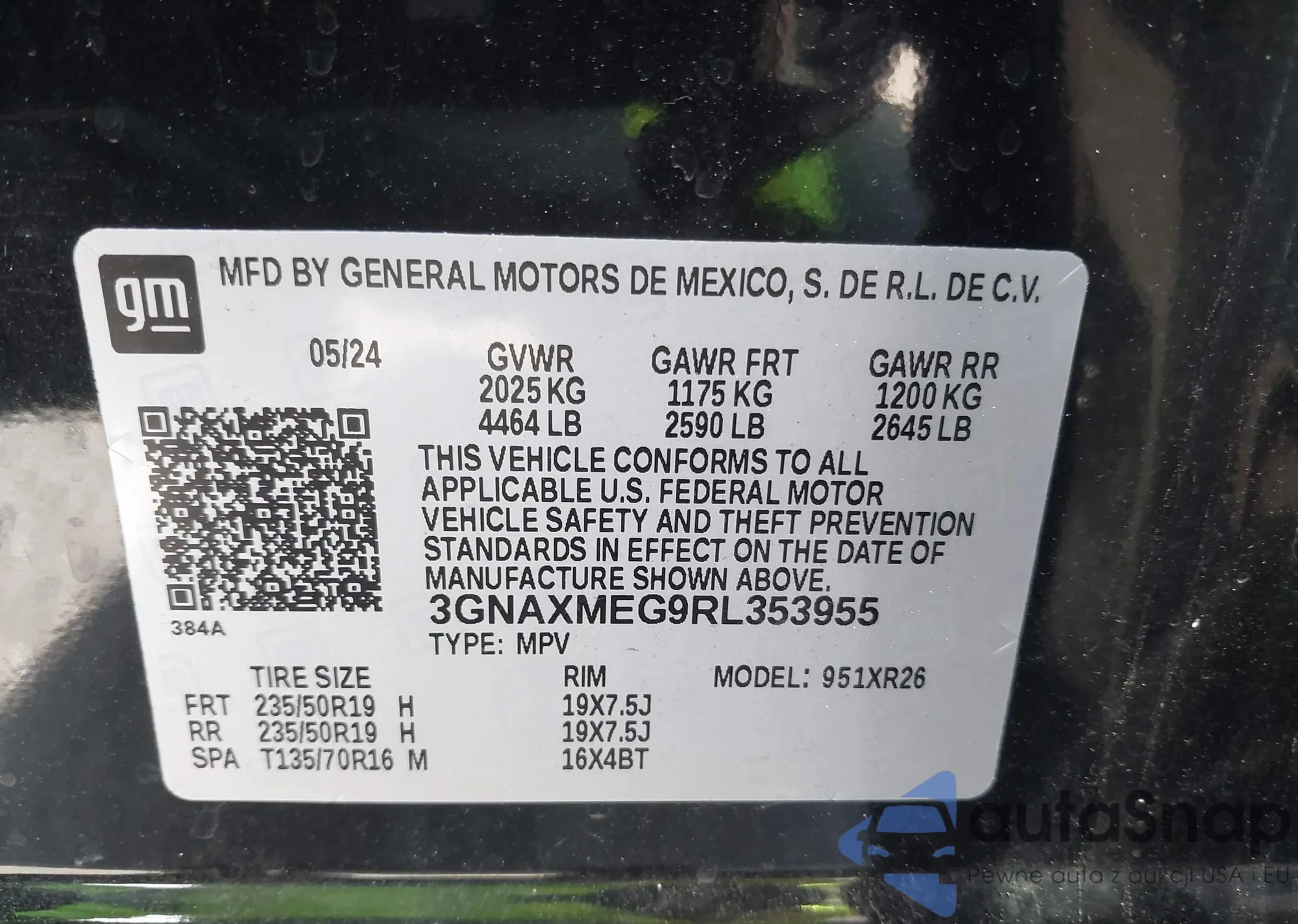 • VIN 3GNAXMEG9RL353955