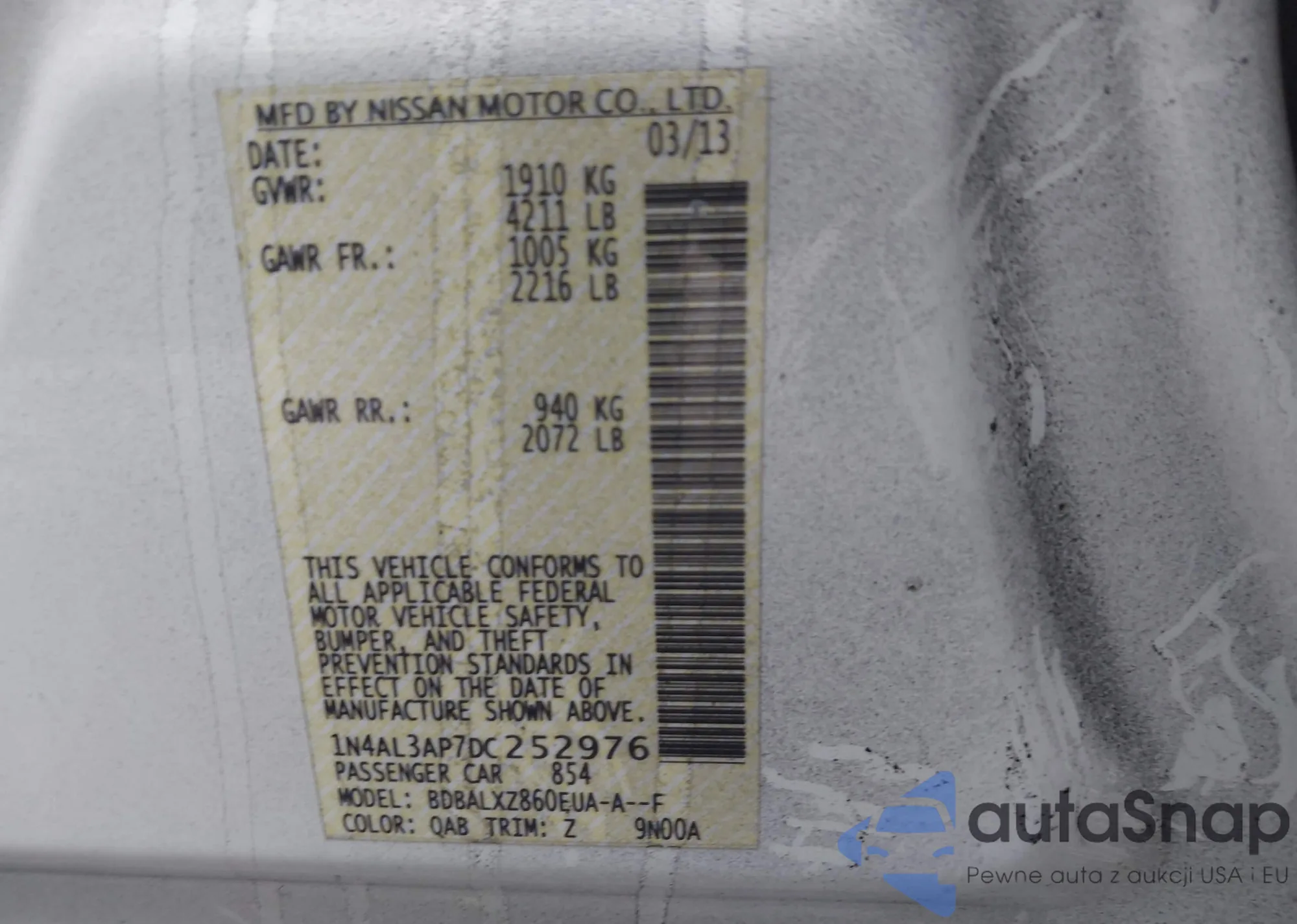• VIN 1N4AL3AP7DC252976